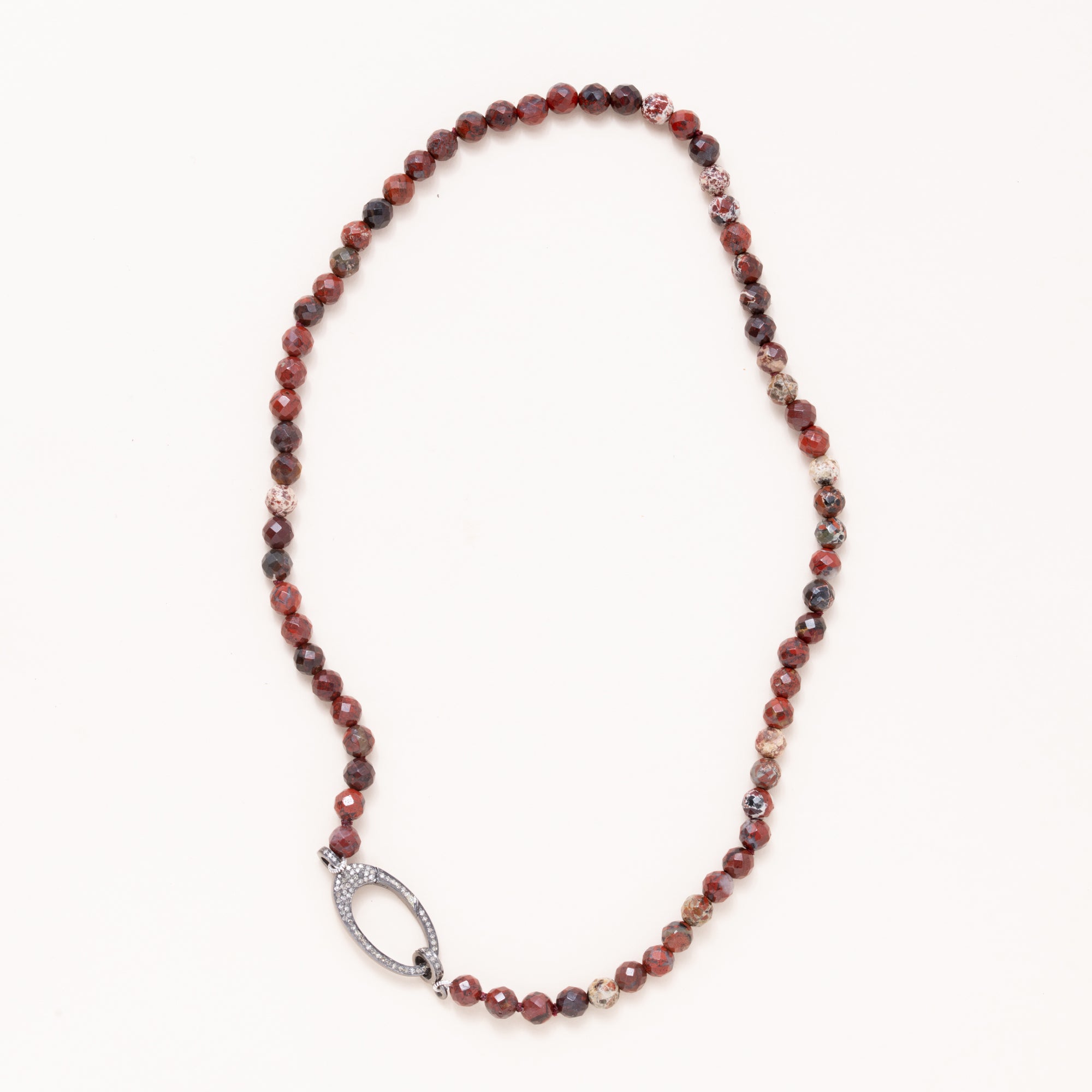 Jasper Necklace with Silver and Diamond Pave Clasp