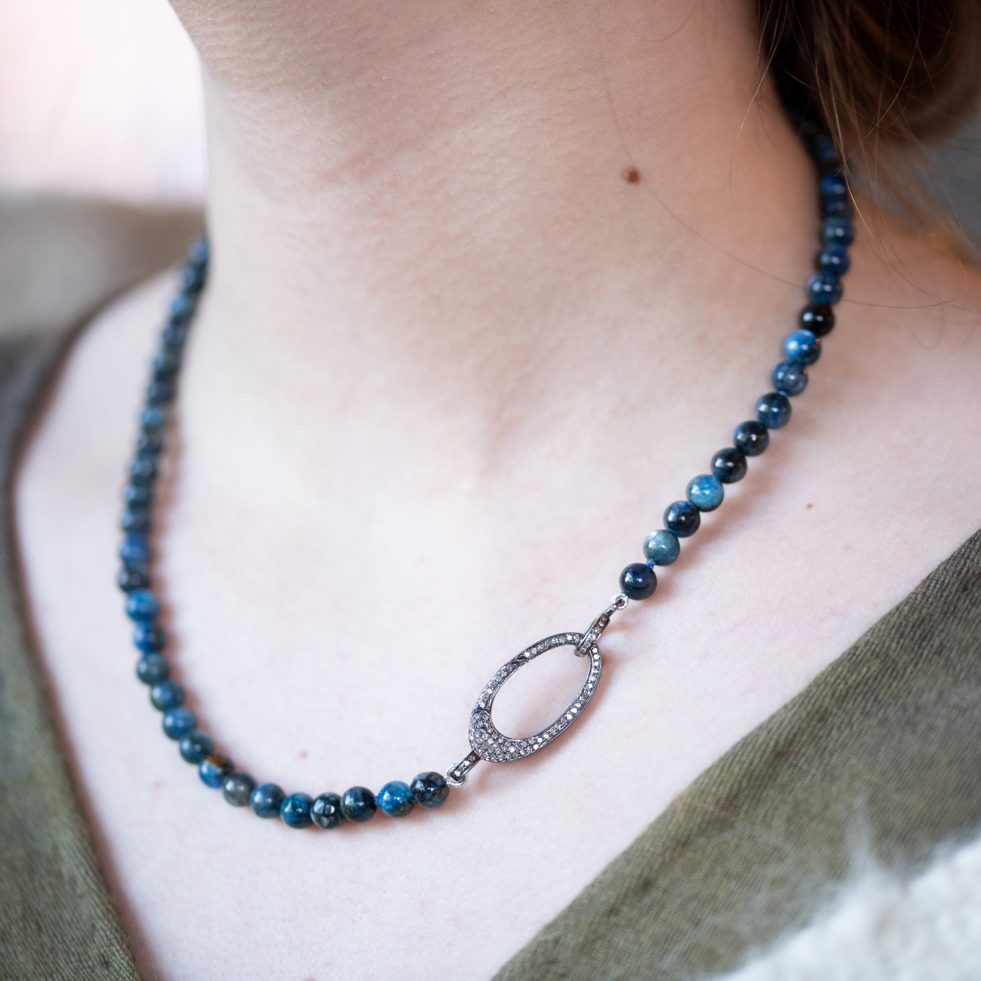 Sodalite Necklace with Silver Diamond Pave Clasp
