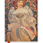 [Flame Tree Publishing] Part of a series of exciting and luxurious Flame Tree Notebooks. Combining high-quality production with magnificent fine art, the covers are printed on foil in five colours, embossed then foil stamped. And they’re powerfully practical: a pocket at the back for receipts and scraps, two bookmarks and a solid magnetic side flap. These are perfect for personal use and make a dazzling gift. This example features the sumptuous Alphonse Mucha image Reverie. Mucha produced this popular decorative panel in 1897, a variation of an original artwork commissioned by Champenois for a calendar titled ‘Daydream’. Gazing out at the viewer, the young woman sits with an open book on her lap, wearing a flowing dress with voluminous sleeves in the Byzantine style. Such an enchanting illustration epitomizes Le Style Mucha.