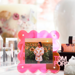 Show off your memories in a unique way with our Neon Pink Mini Acrylic Picture Frame! This acrylic scalloped frame adds a playful touch to your photos, making them stand out in any room. Great for nightstands, and desks plus they make for the perfect gift!