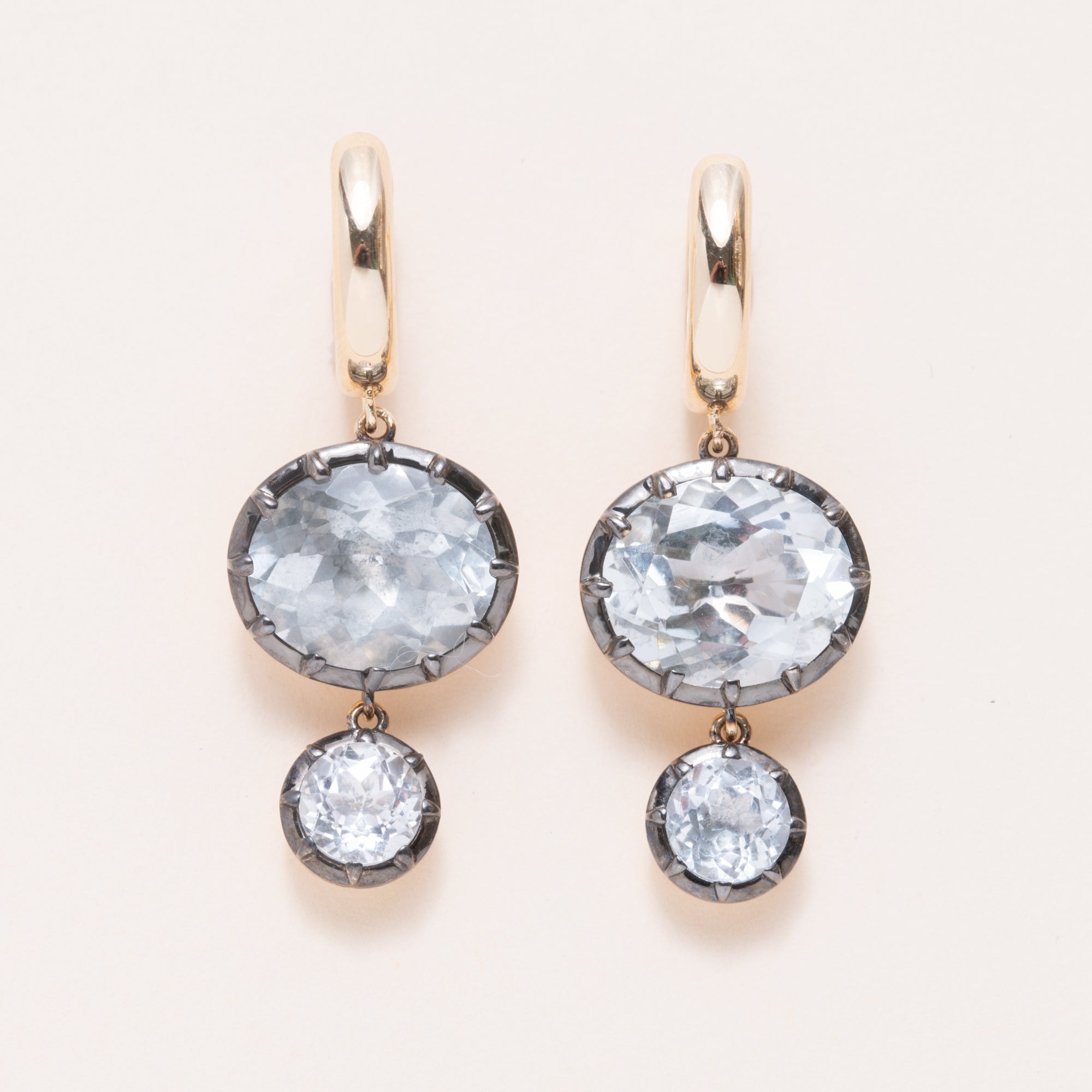 14K Gold, Oxidized Silver & White Topaz Double Drop Huggies