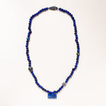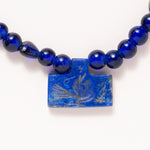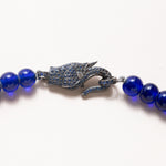 African Glass Beads, Enamel & Diamond Beads, Pave Diamond & Sapphire Bead, Sapphire /Silver Elephant Clasp with Carved Afghan Lapis Necklace