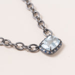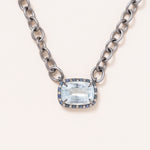 Aquamarine, Sapphire & Diamond Pave, Silver Necklace with Pave Diamond Clasp