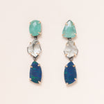Colombian Emerald, Aquamarine, Australian Opal, Silver & 14K Gold Earrings