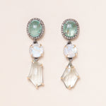 Colombian Emerald with Pave Diamonds, Moonstone, Green Beryl, Silver & 14K Gold Earrings