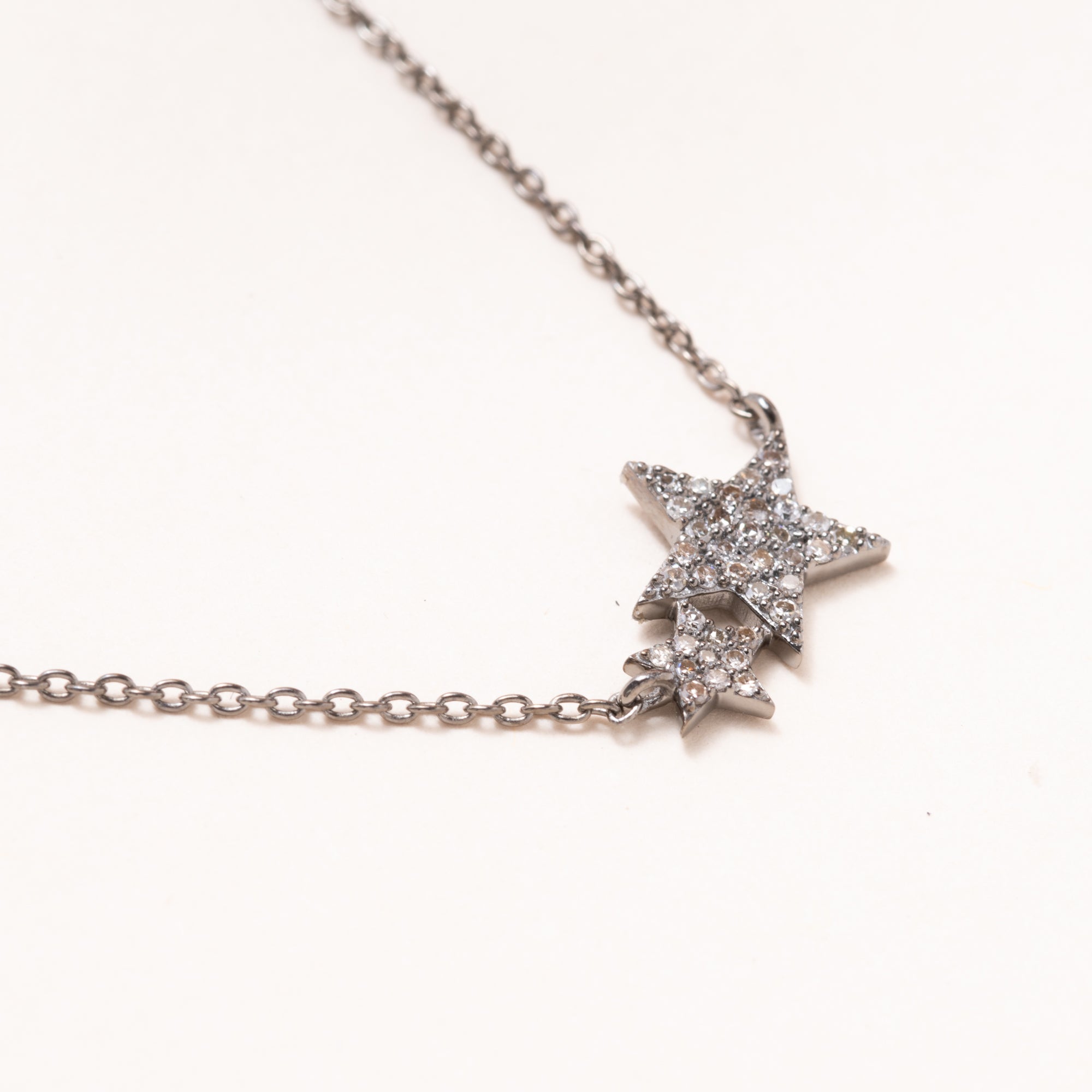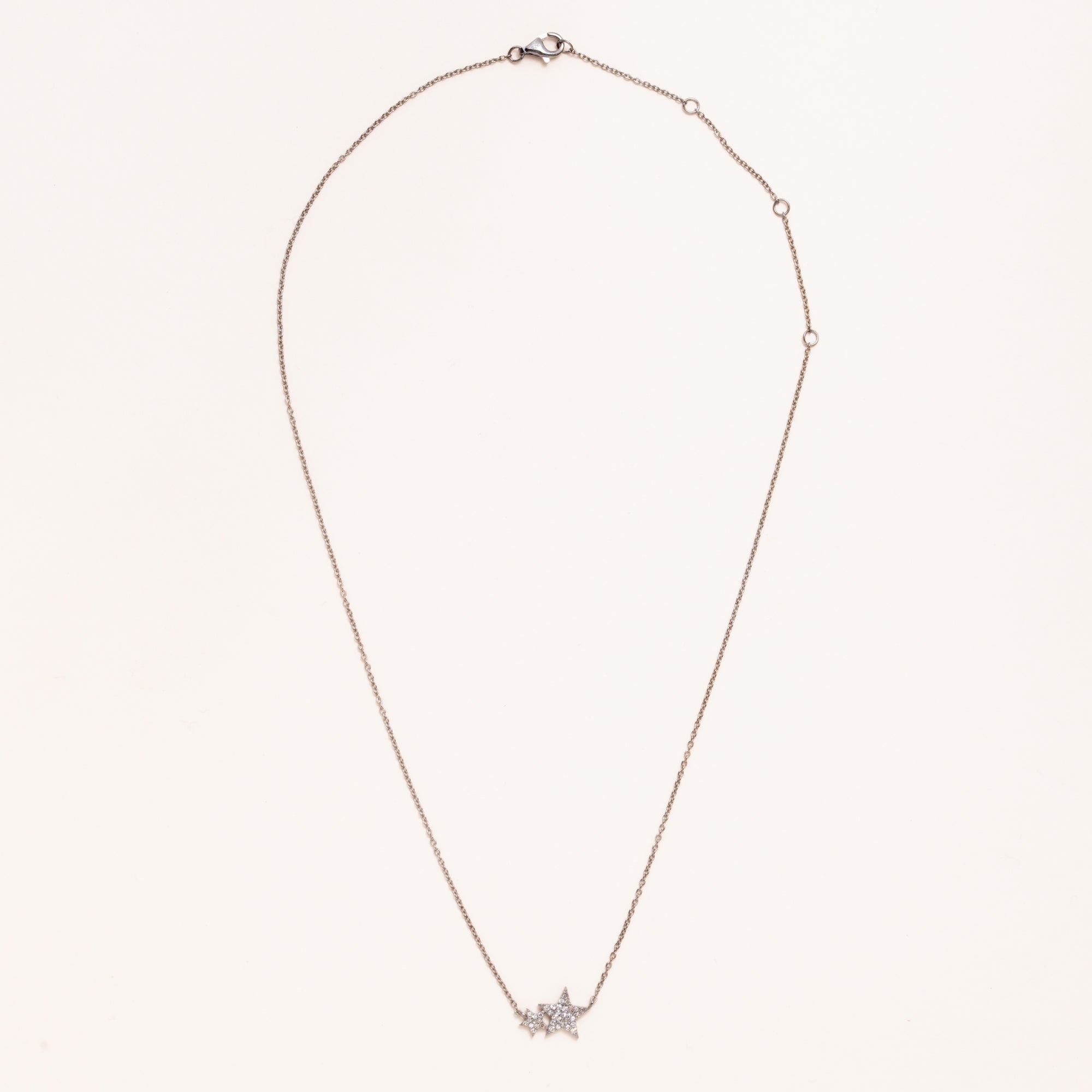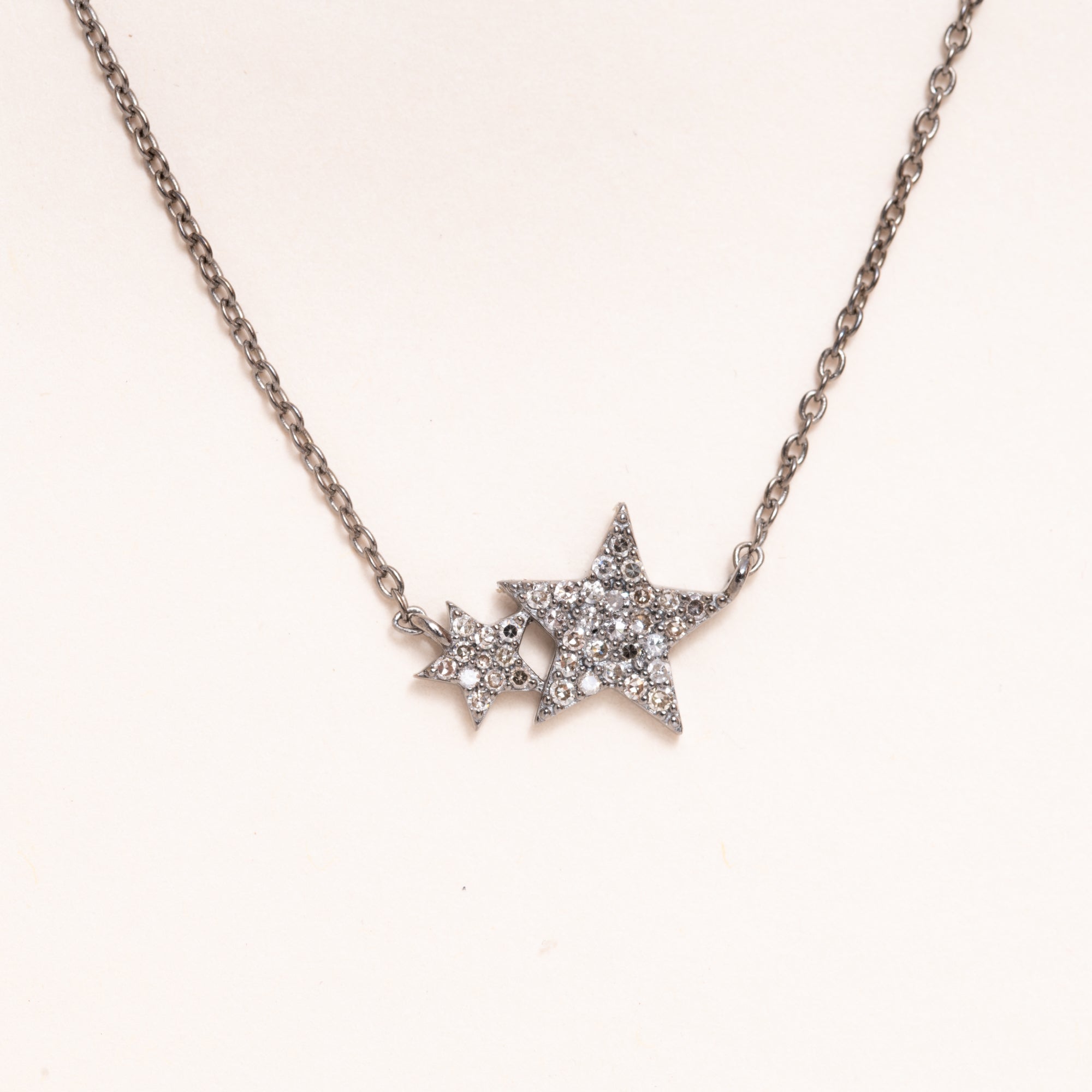 This Diamond Double Star necklace has multiple loops for the clasp making it adjustable from 15" all the way to 18" in length.