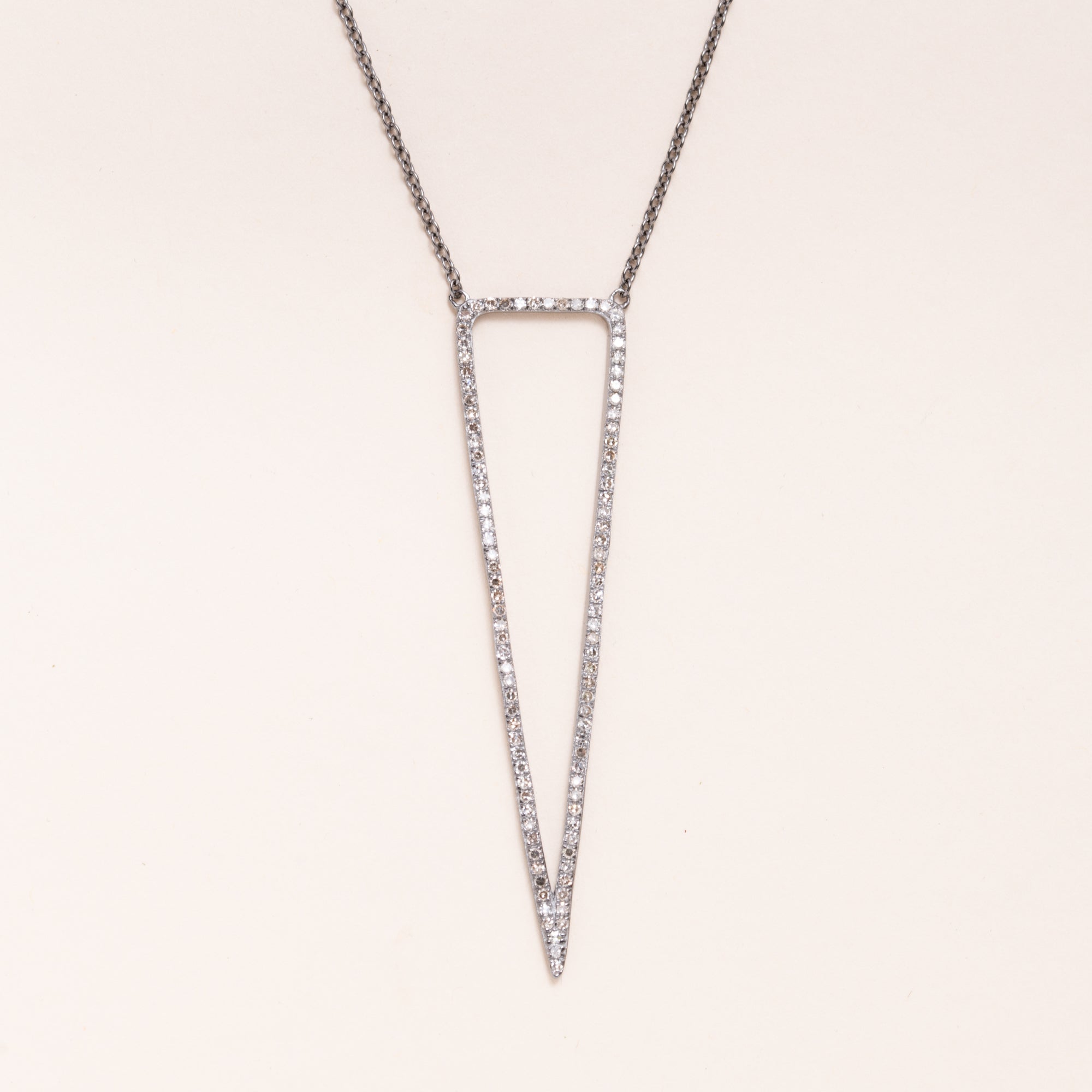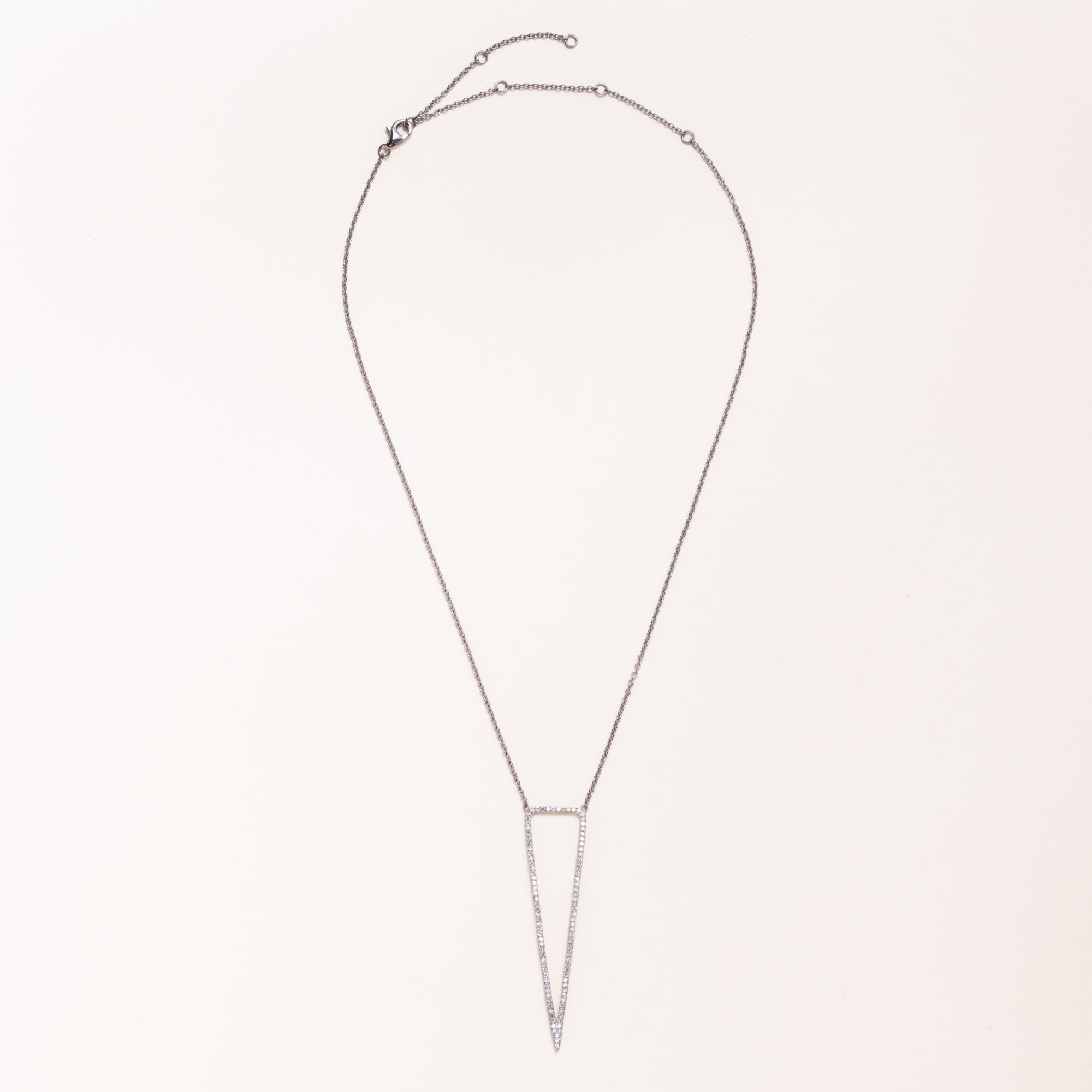 This Diamond Elongated Triangle necklace has multiple loops for the clasp making it adjustable from 20" all the way to 24" in length.