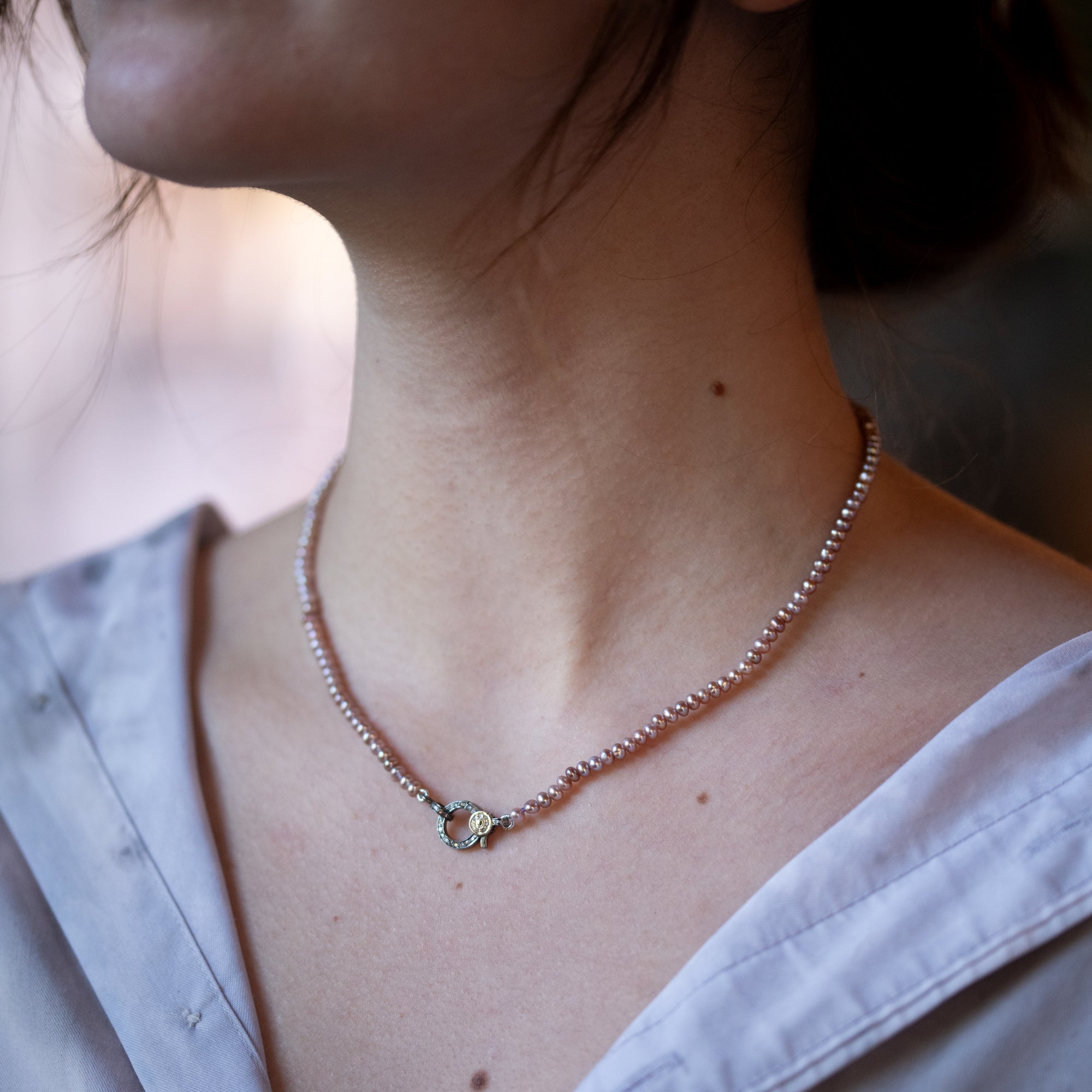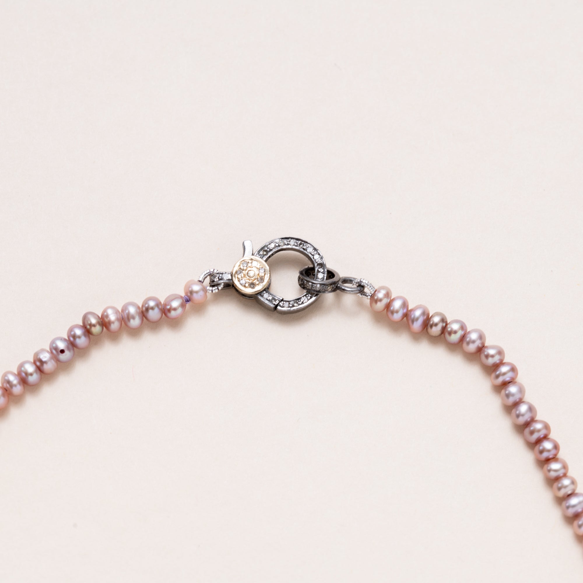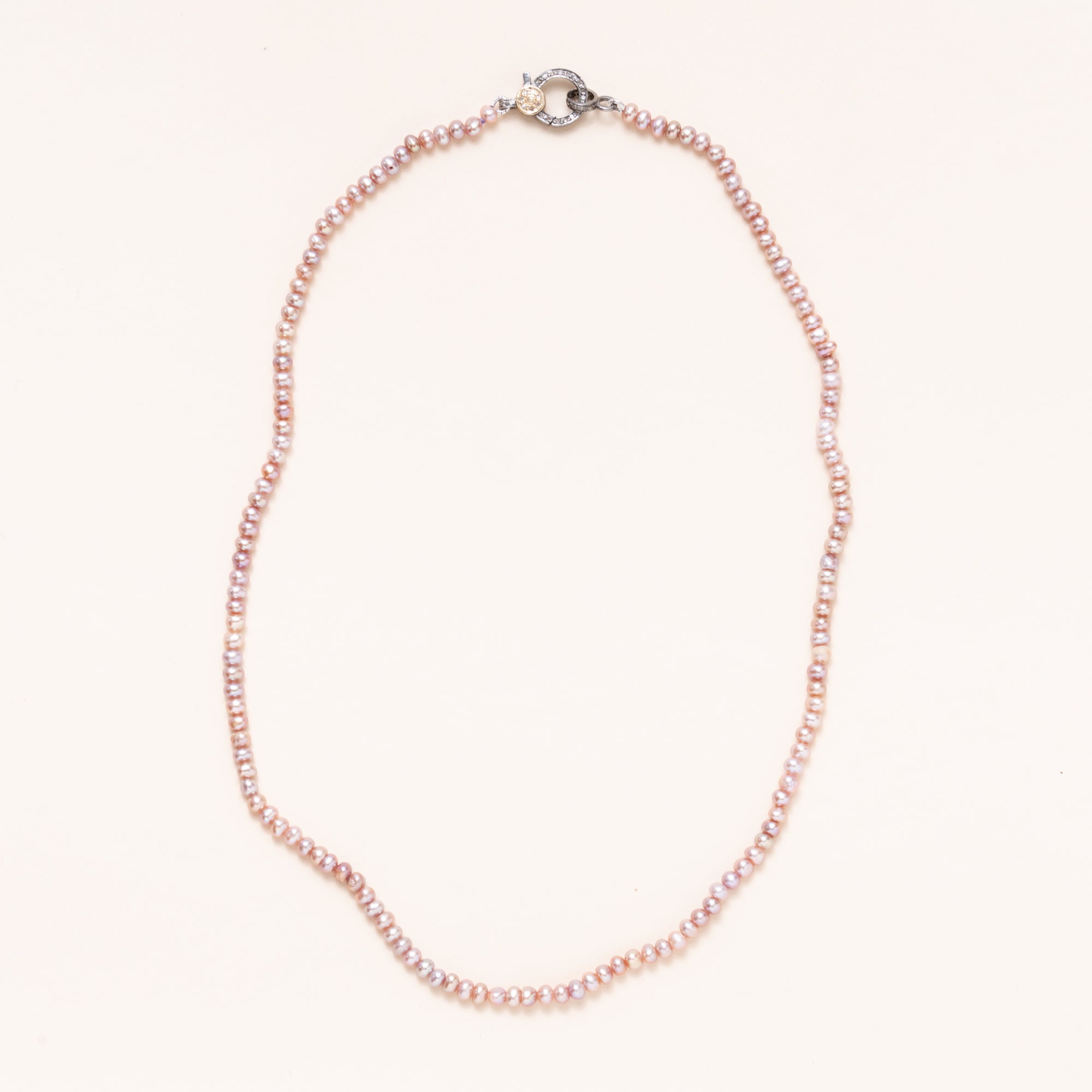 Dusty Rose Seed Pearl Necklace with Silver/Gold Diamond Pave Clasp