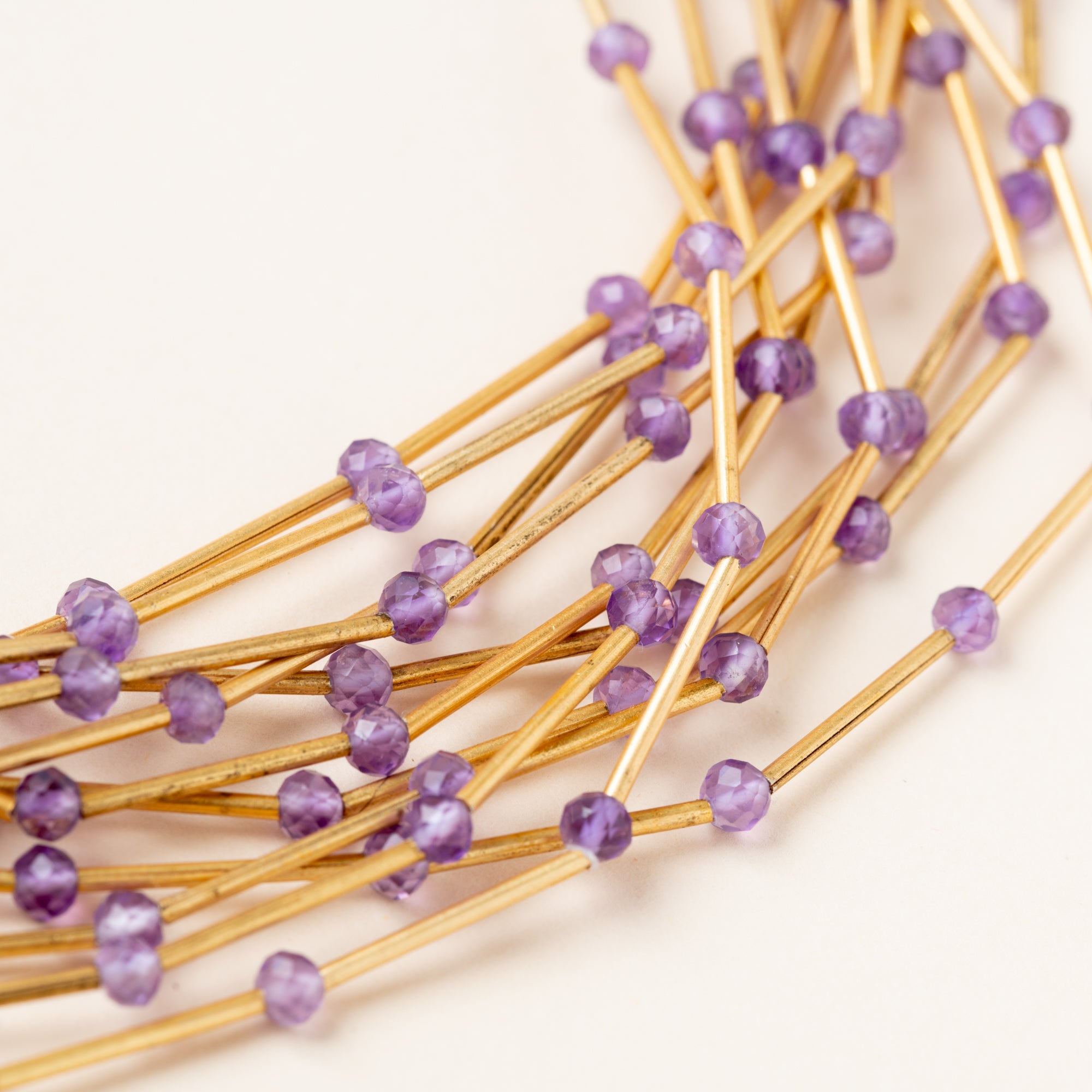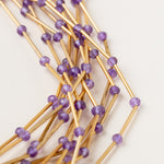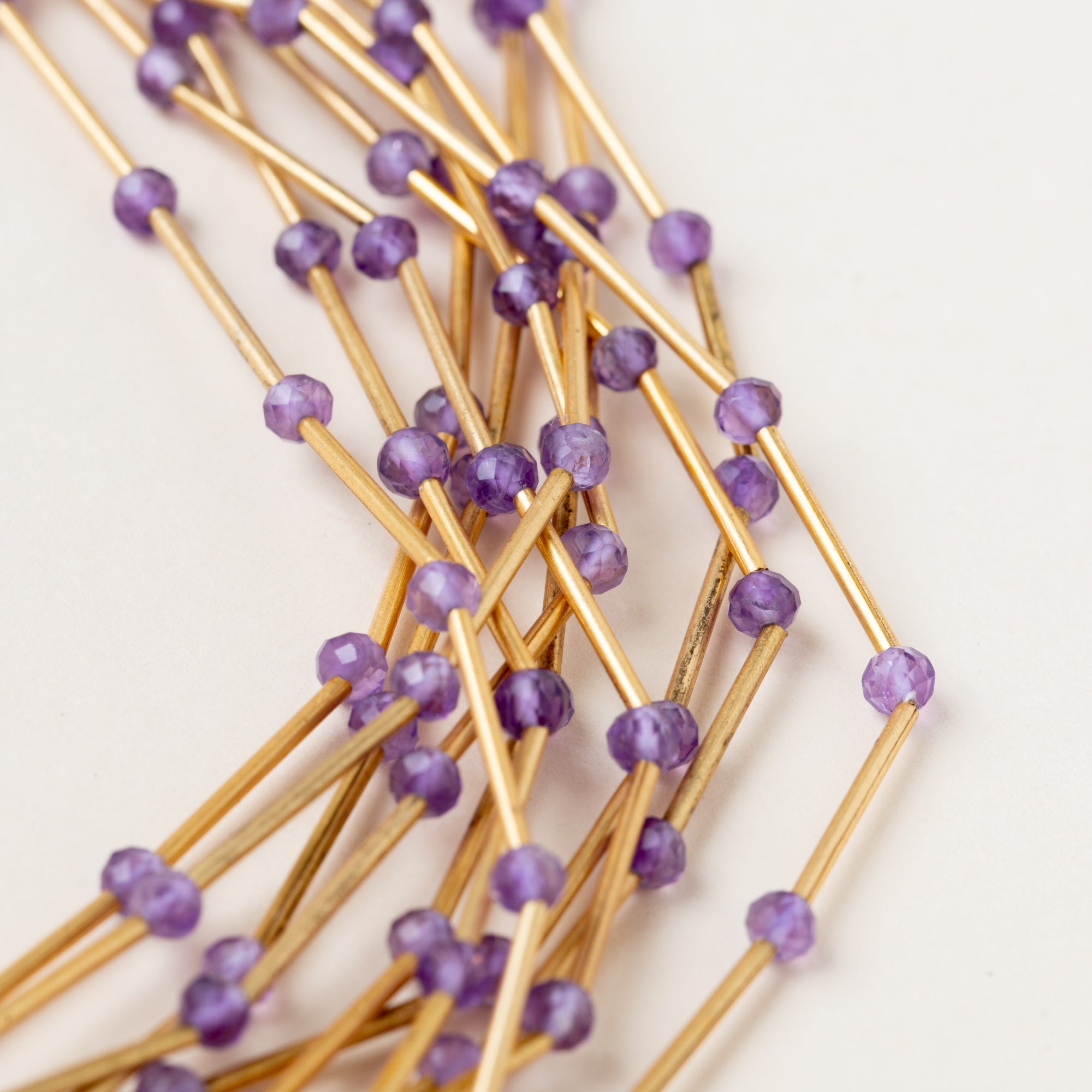 Amethyst is a highly serene and spiritual gemstone. It is known for opening the crown chakra, helping ease headaches and insomnia, balancing emotions, and keeping the mind in a calm clear state. It is also the birthstone for February!