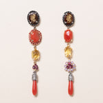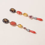 Italian Carved Carnelian, Coral, Citrine & Pink Sapphire Earrings