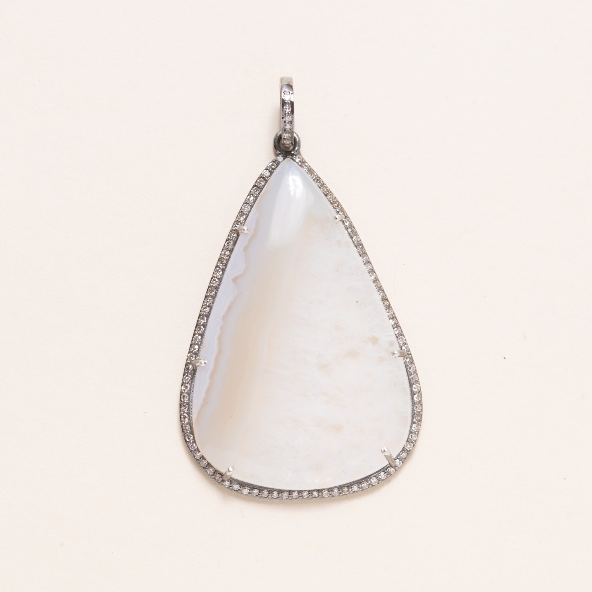 Natural Druzy, Silver & Pavé Diamonds Pendant