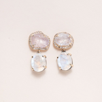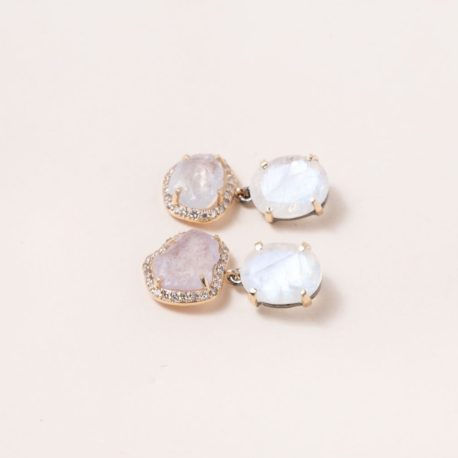 Natural Sapphire, Moonstone, 14 K Gold & Pave Diamond Drop Earrings