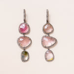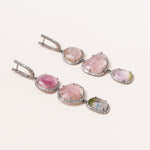 Natural Tourmaline set in Silver with Pave Diamonds Earrings