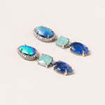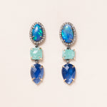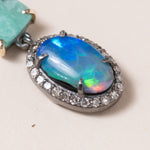 Opal with Pave Diamonds, Colombian Emeralds, Neon Kyanite, Silver & 14K Gold Earrings