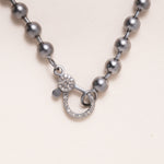 Oxidized Silver Ball Chain with Diamond Pave Clasp Necklace