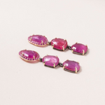Ruby Drop Earrings, 14K Gold, Silver & Pink Sapphire Pave