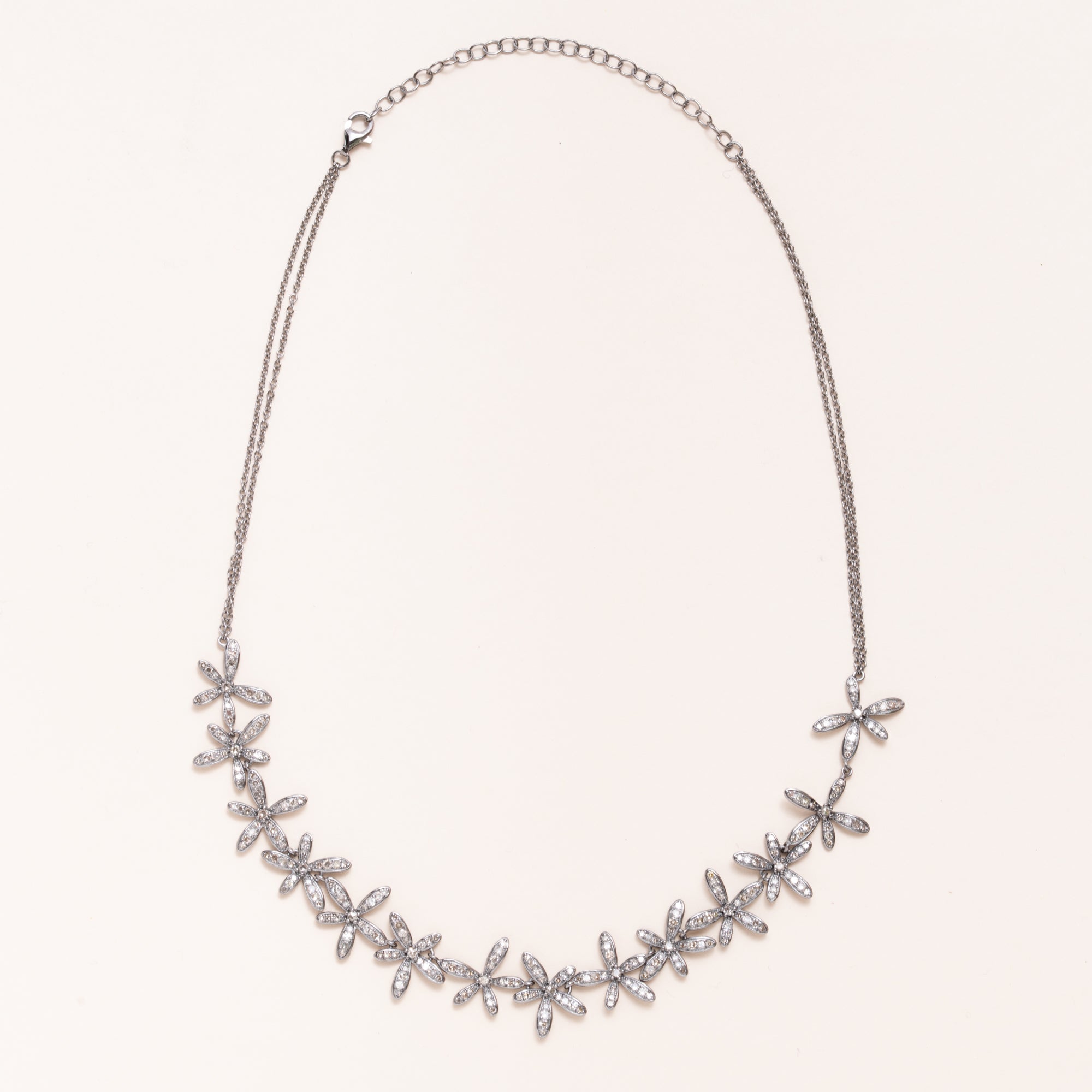 This sweet Diamond Pave Flower necklace has an adjustable chain that can be worn anywhere form a 14" length to an 18" length.