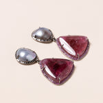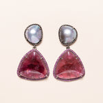 Tourmaline Cabochon and Mabe Pearls with Black Diamonds and Pink Sapphires Earrings