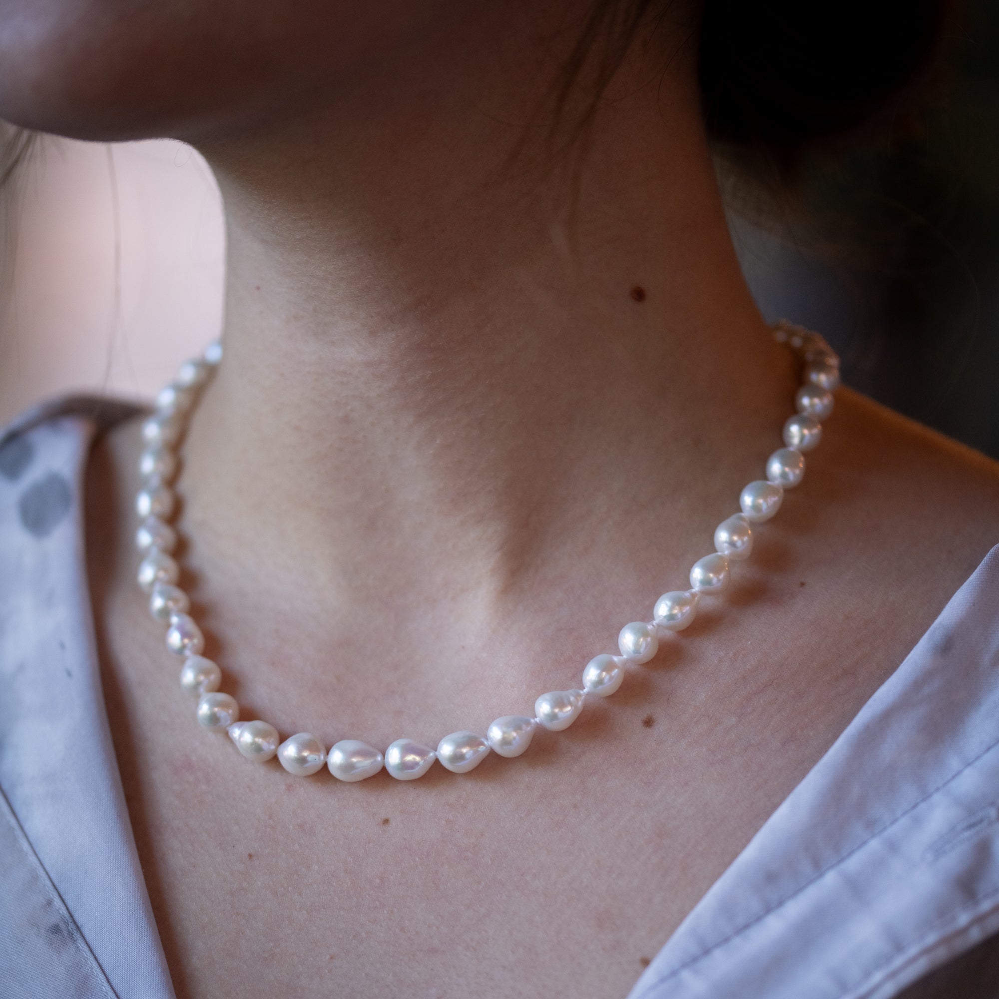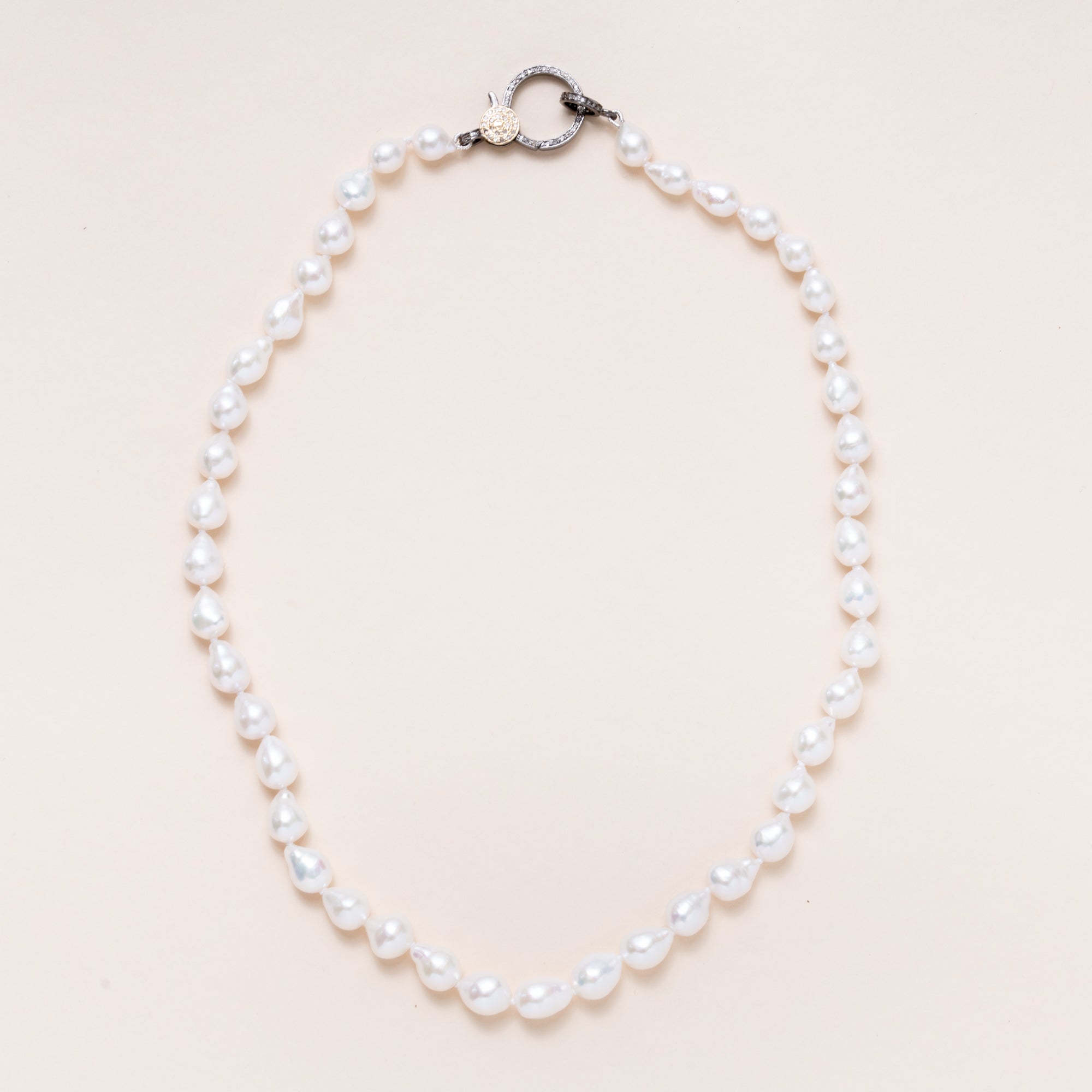 White Sweet Water Pearl Necklace with Diamond Pave Silver/Gold Clasp