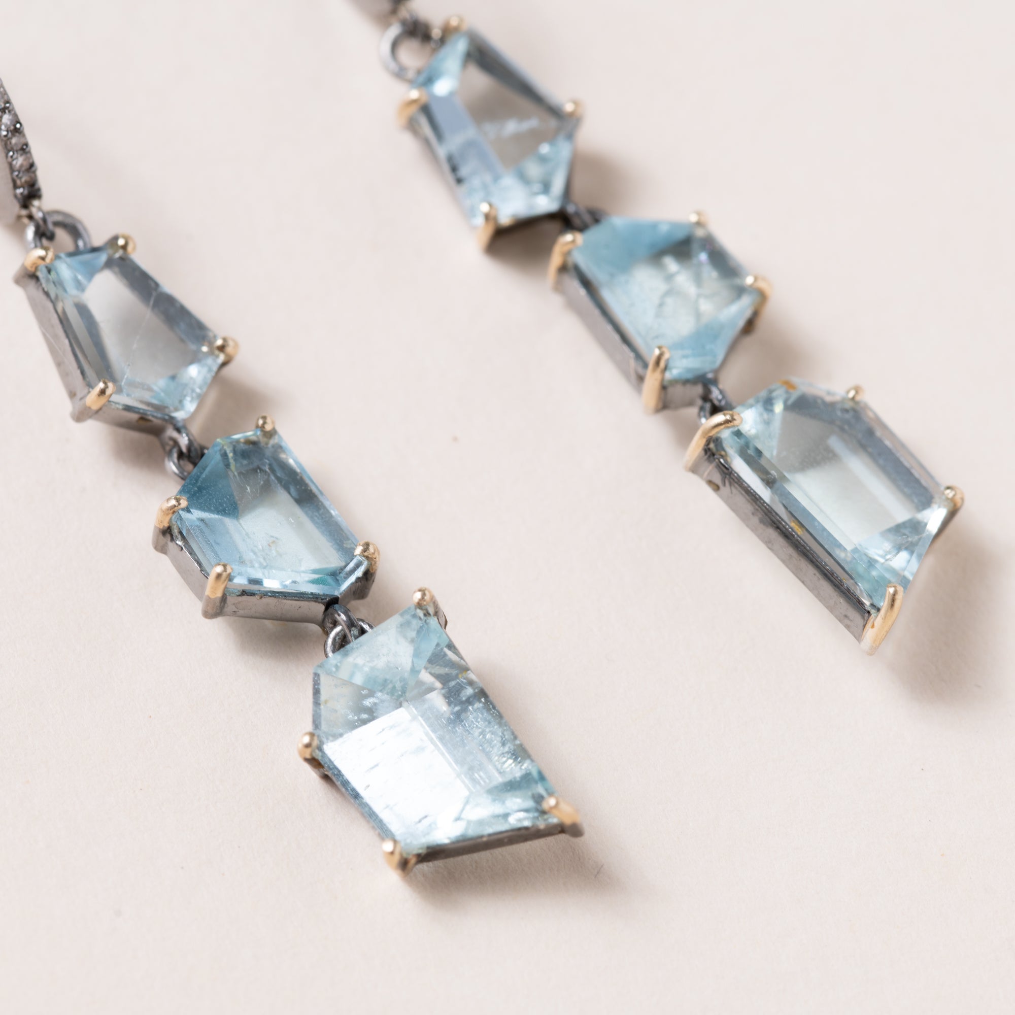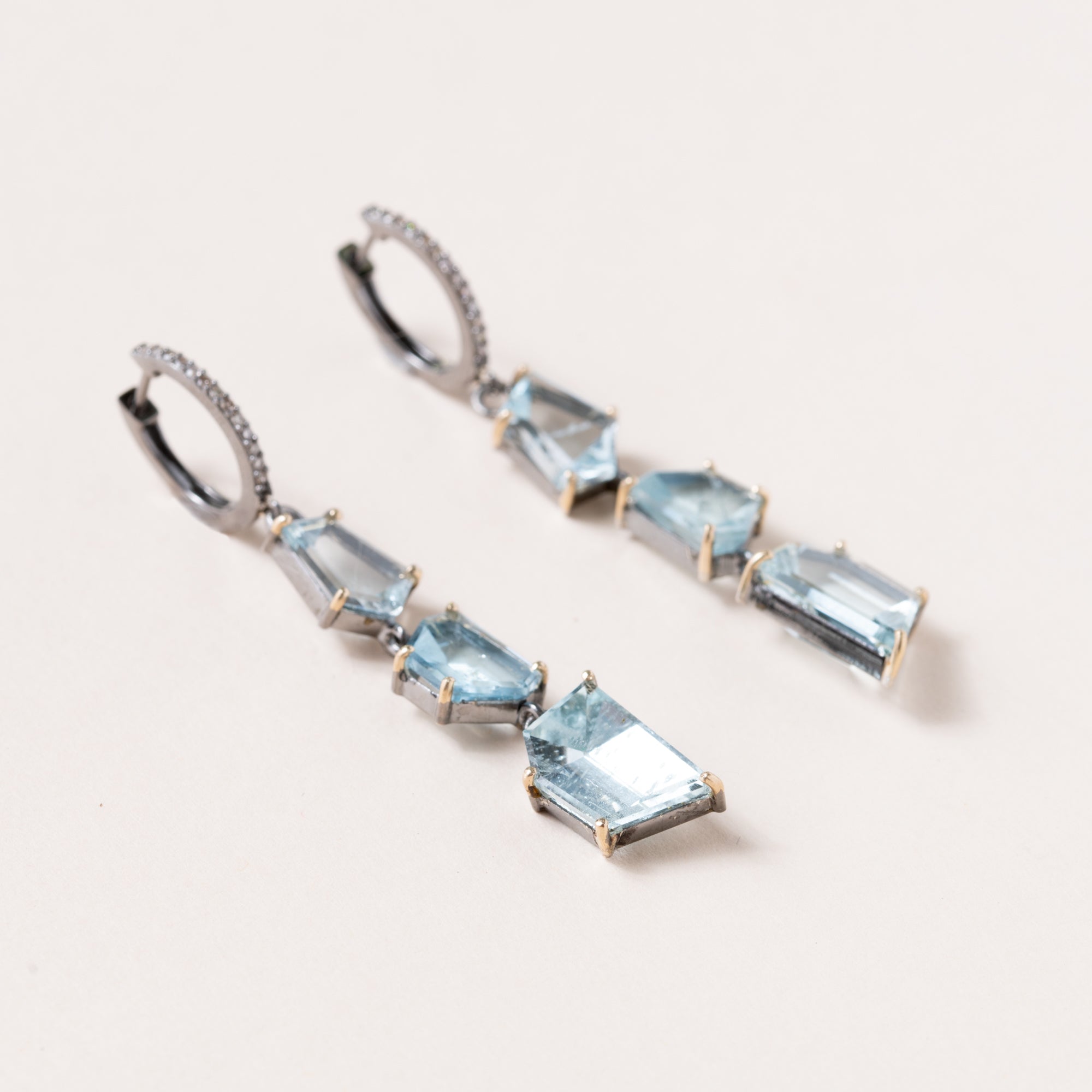 Brazilian Aquamarine, Silver, 14K Gold & Diamond Pave Earrings