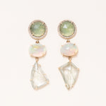 Green Beryl, Ethiopian Opal, Rutilated Quartz, 14k gold & Pavé Diamond Earrings