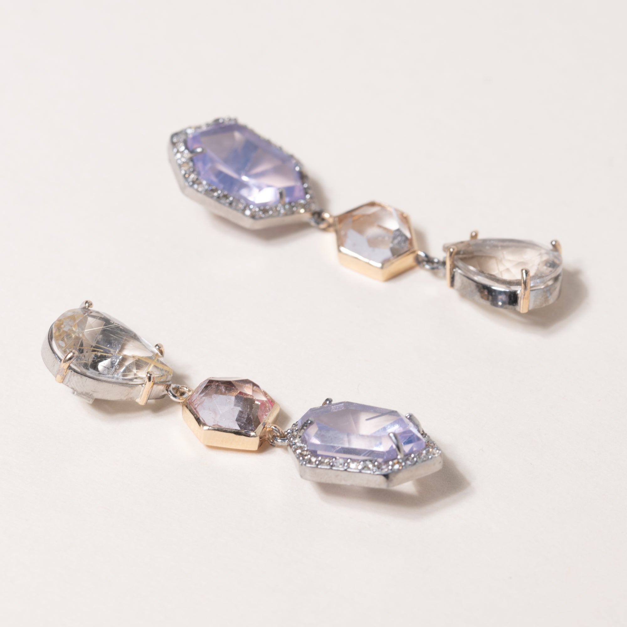 Lavender Amethyst, Morganite & Rutilated Quartz Earrings