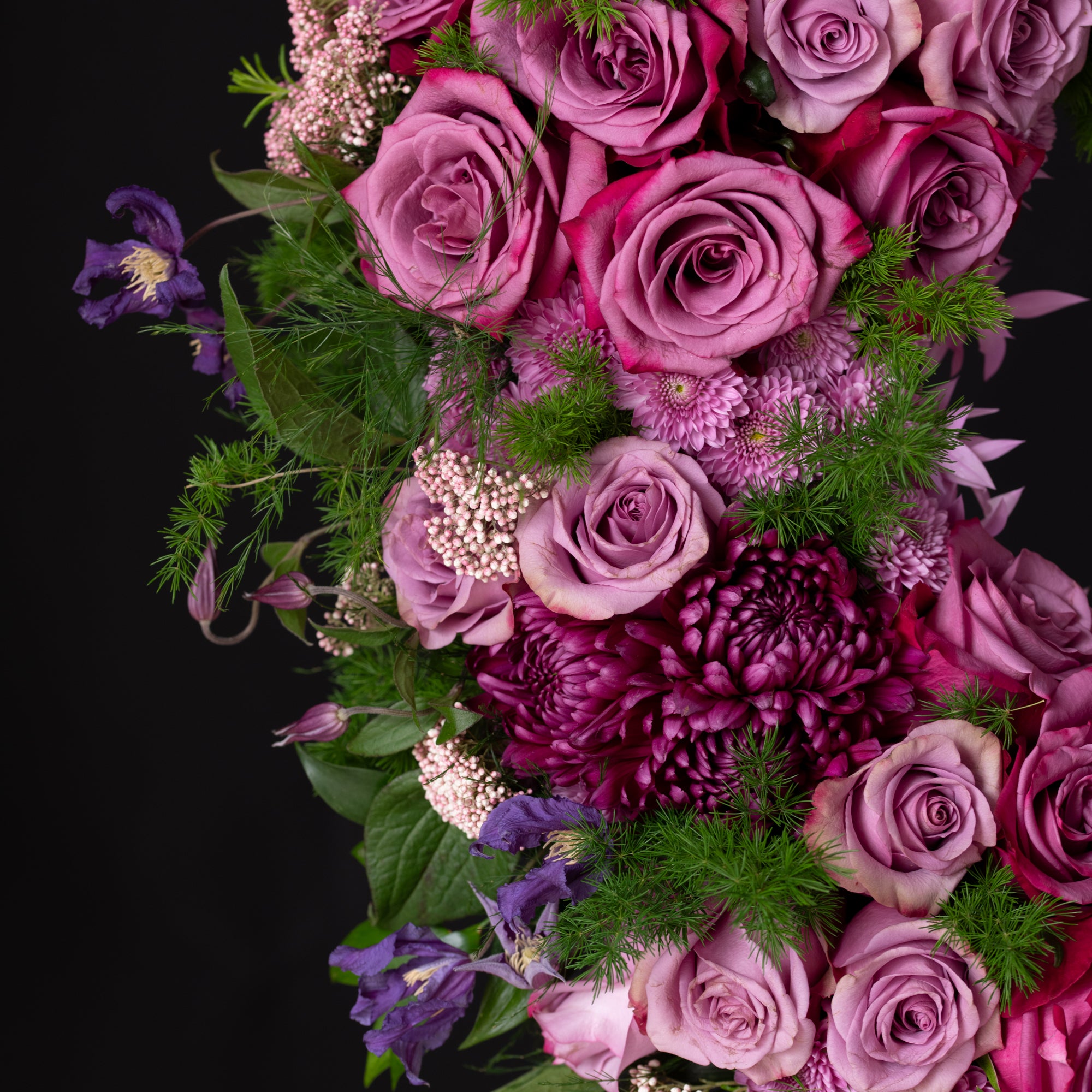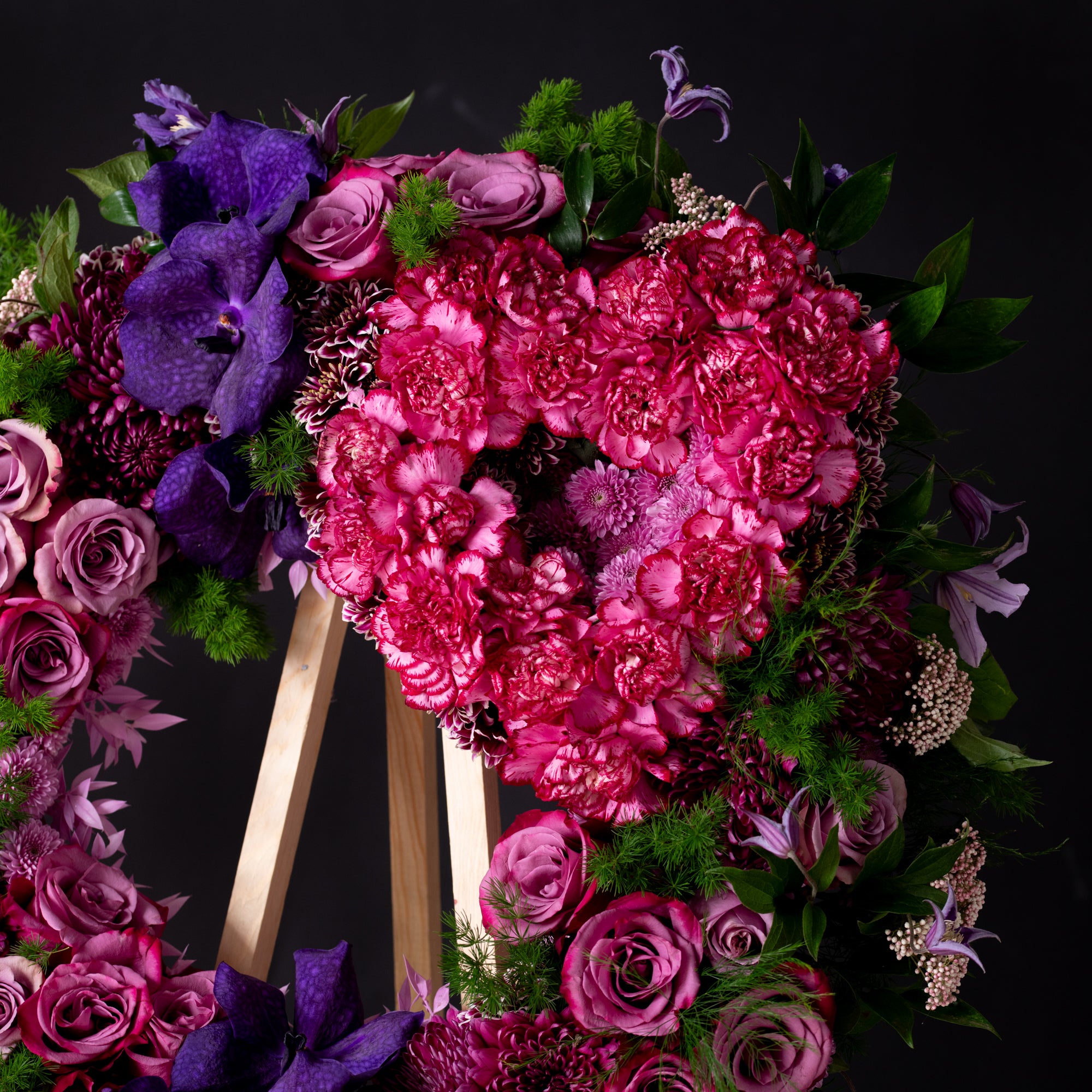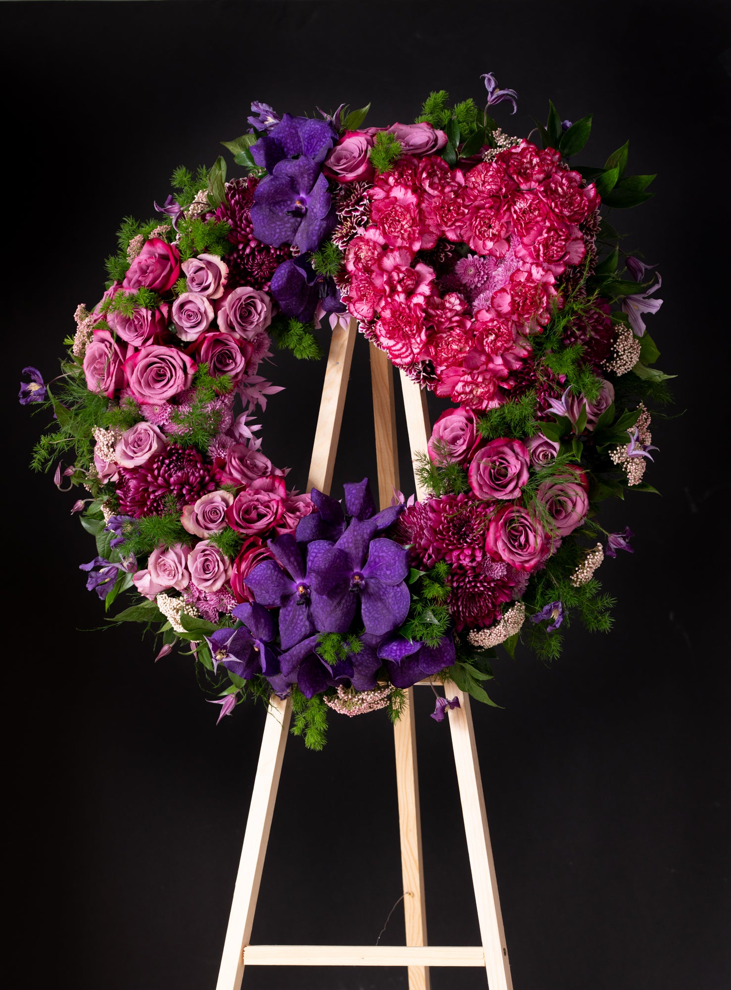 This wreath was specially designed with deep royal colors representing love, to help honor the life of your loved one.