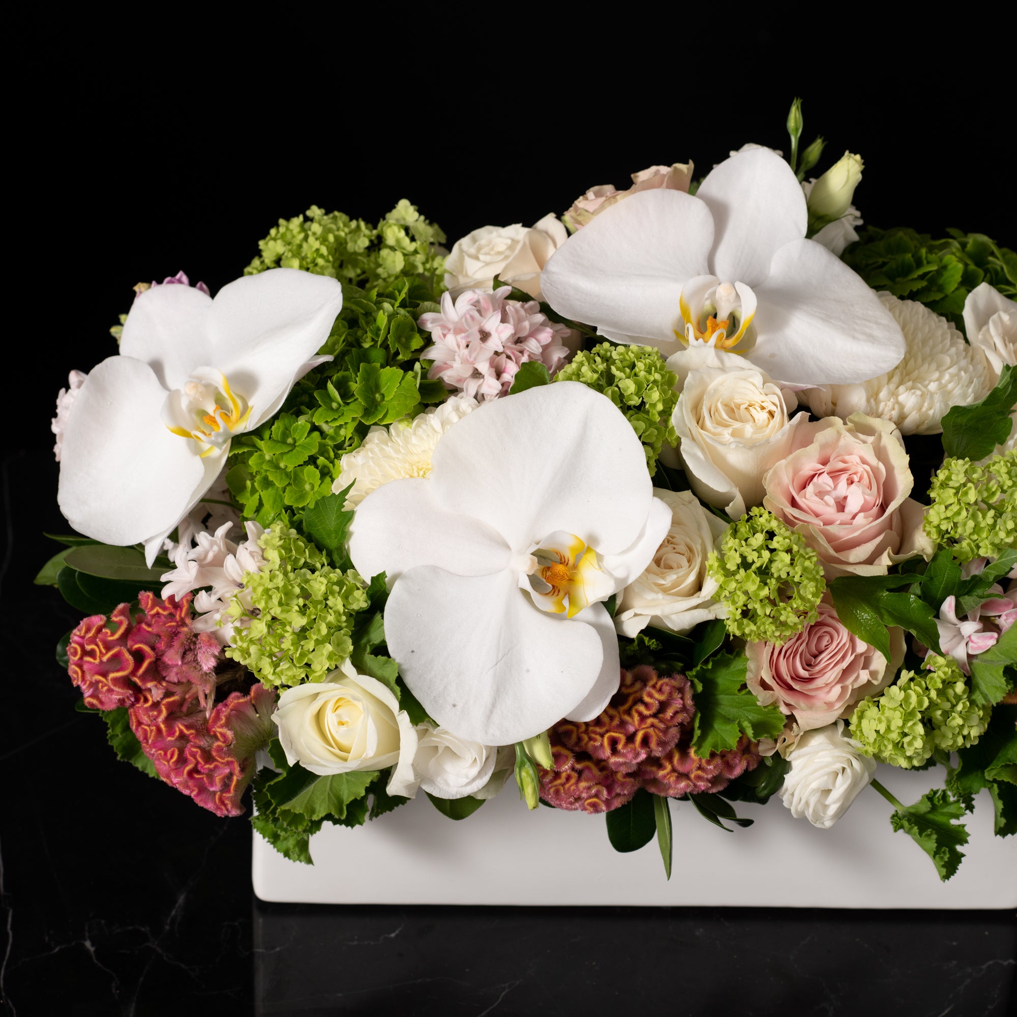 *Arrangement pictured is the Grandiose size. Flowers, containers and colors subject to availability and season.