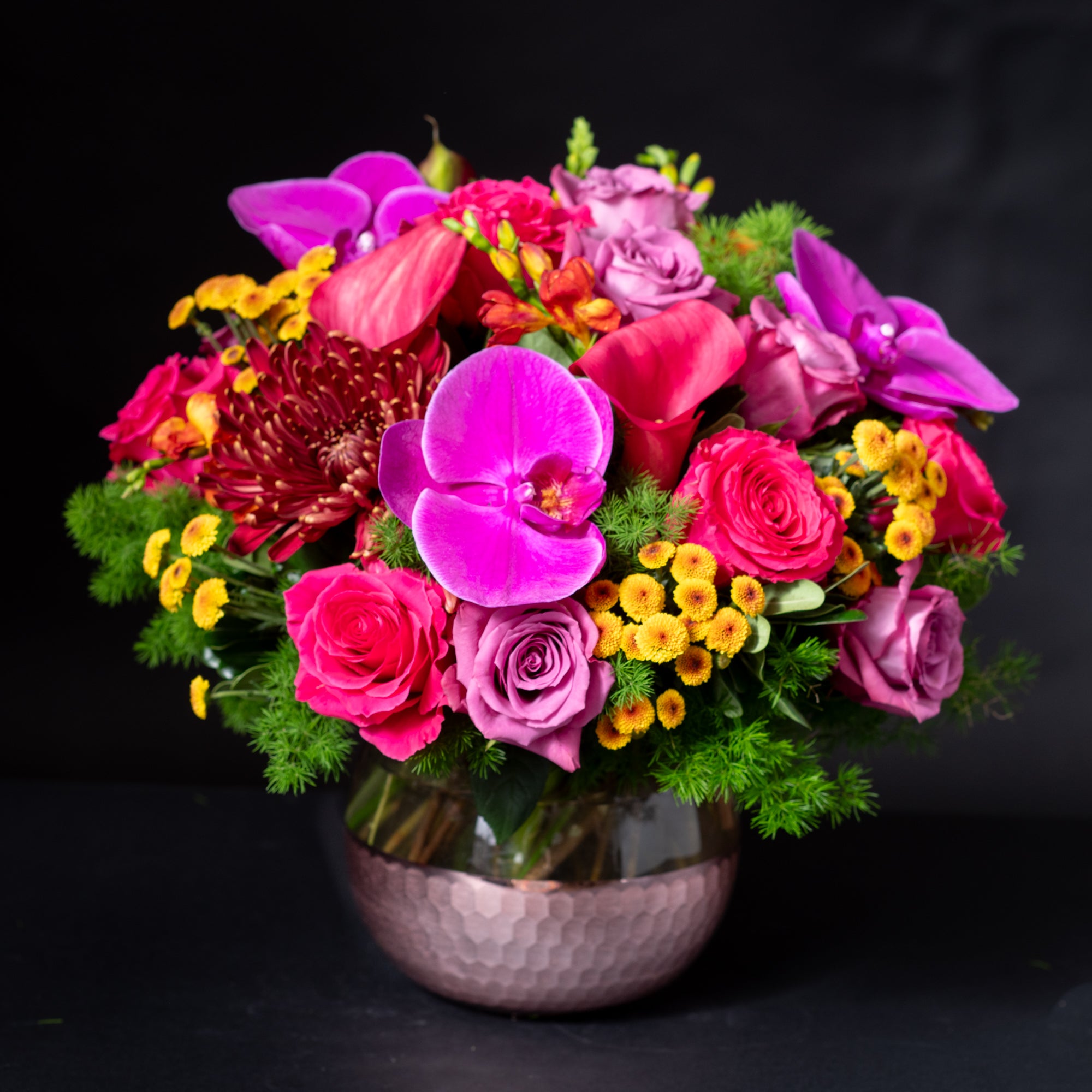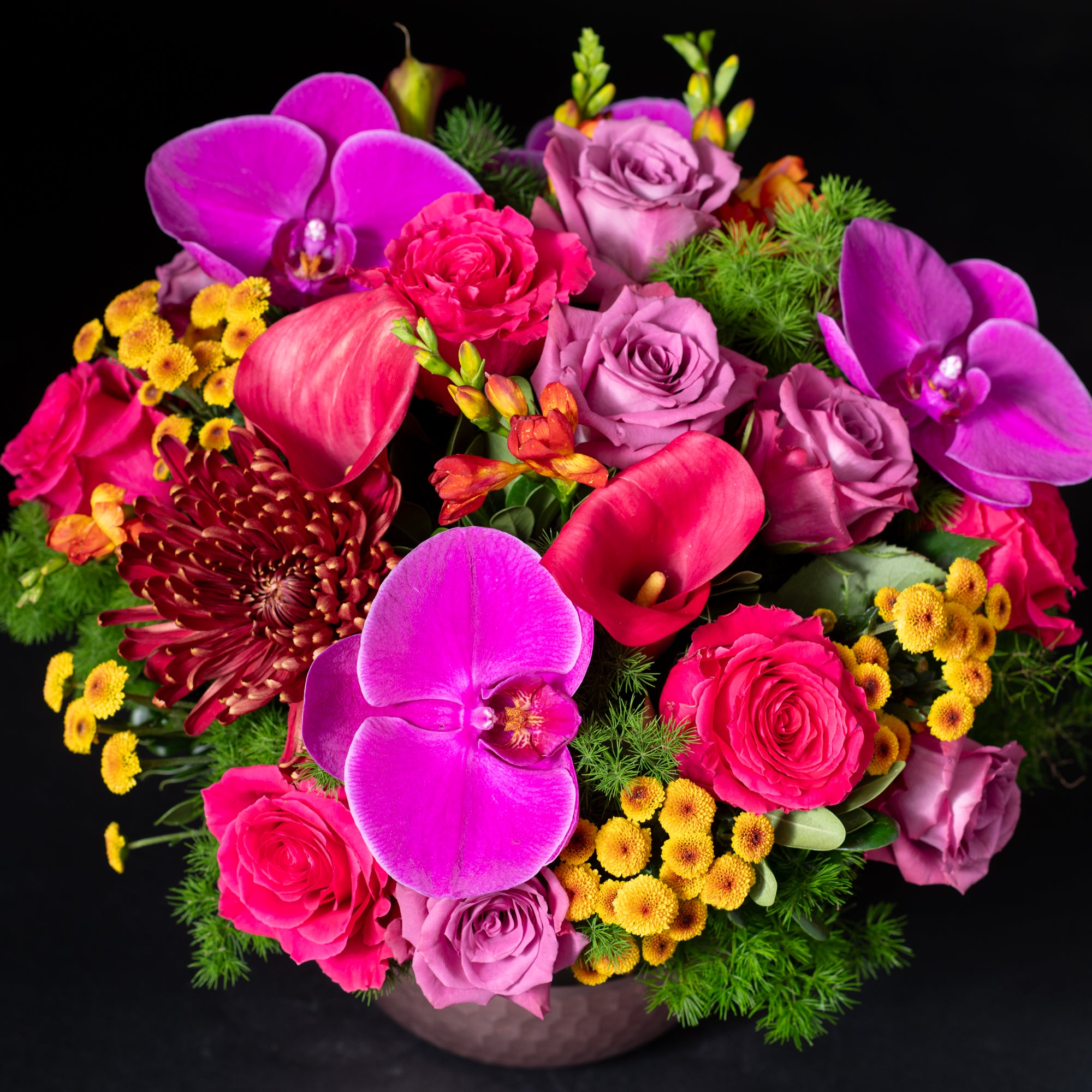 Happy Fall! This cheerful arrangement featuring our novelty Orchids is a fun way to make someone smile or brighten up a space.