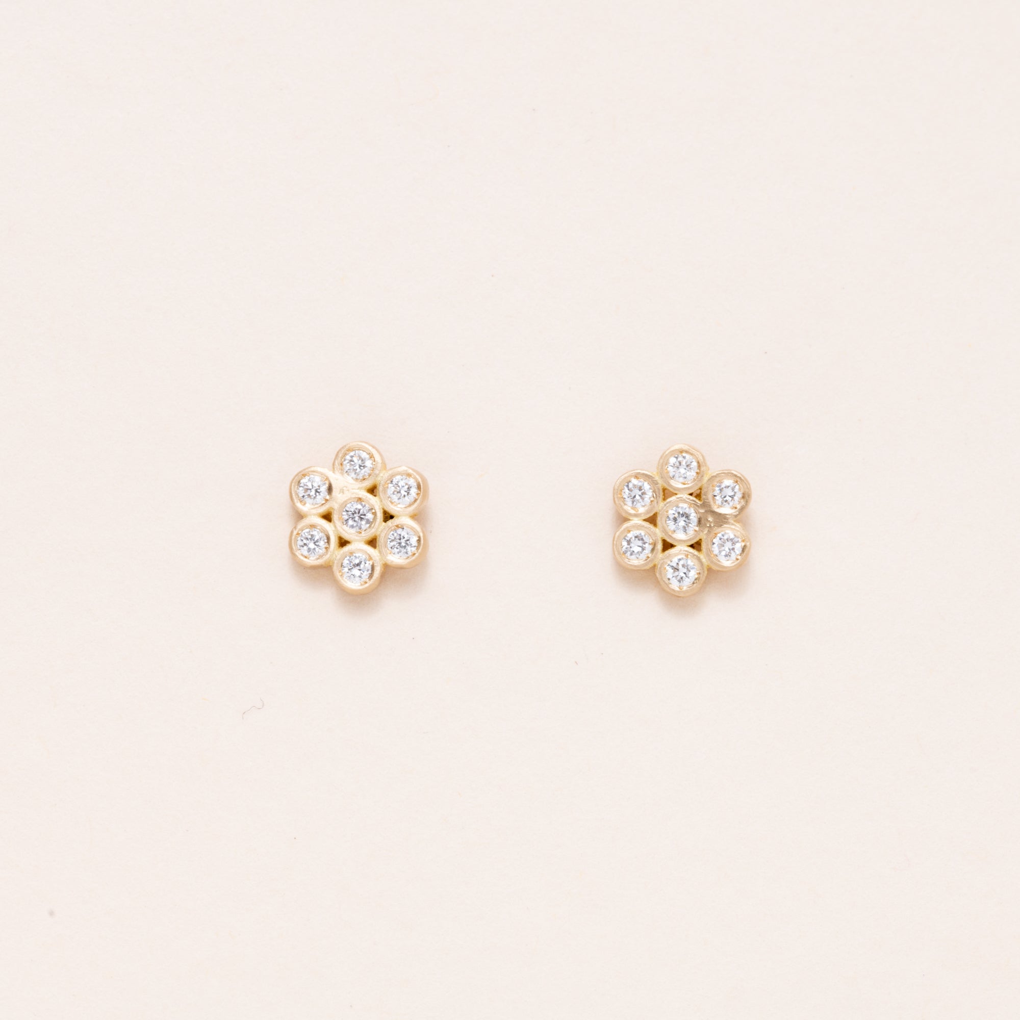 Little White Diamond Flower Studs 18K Gold