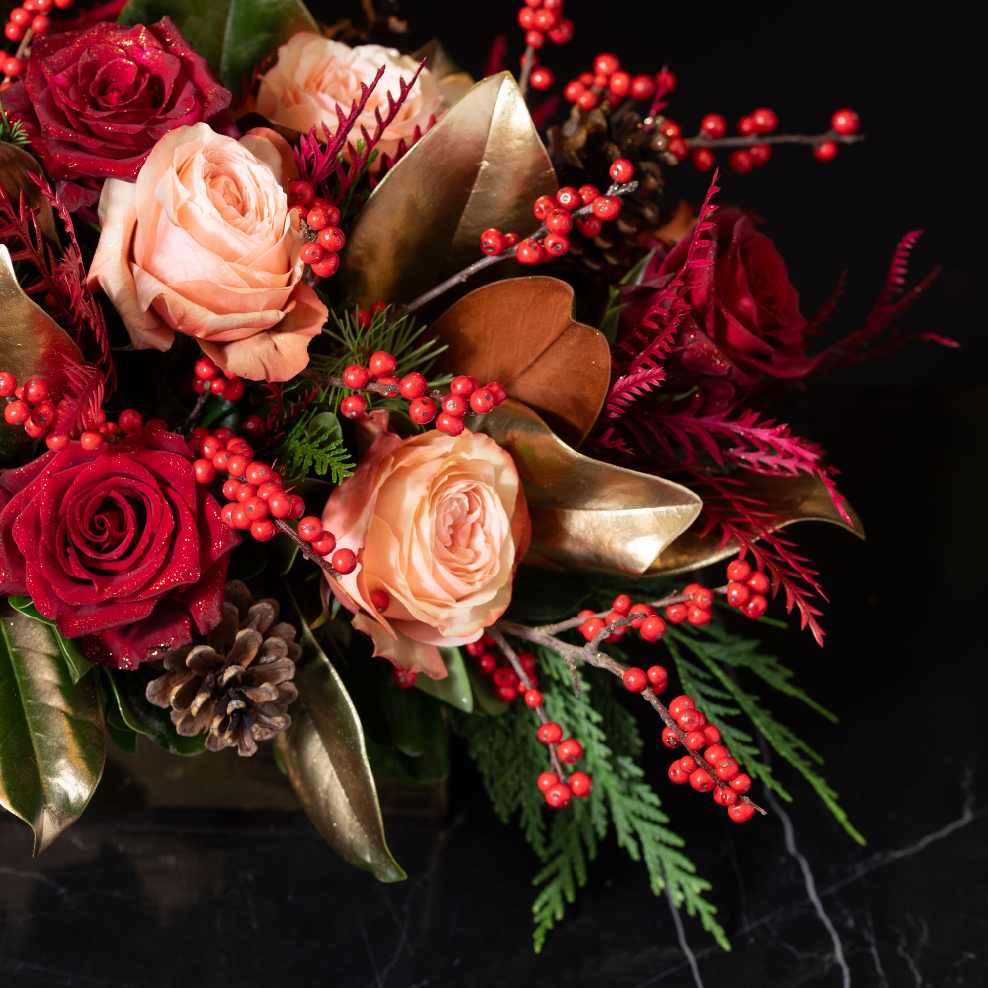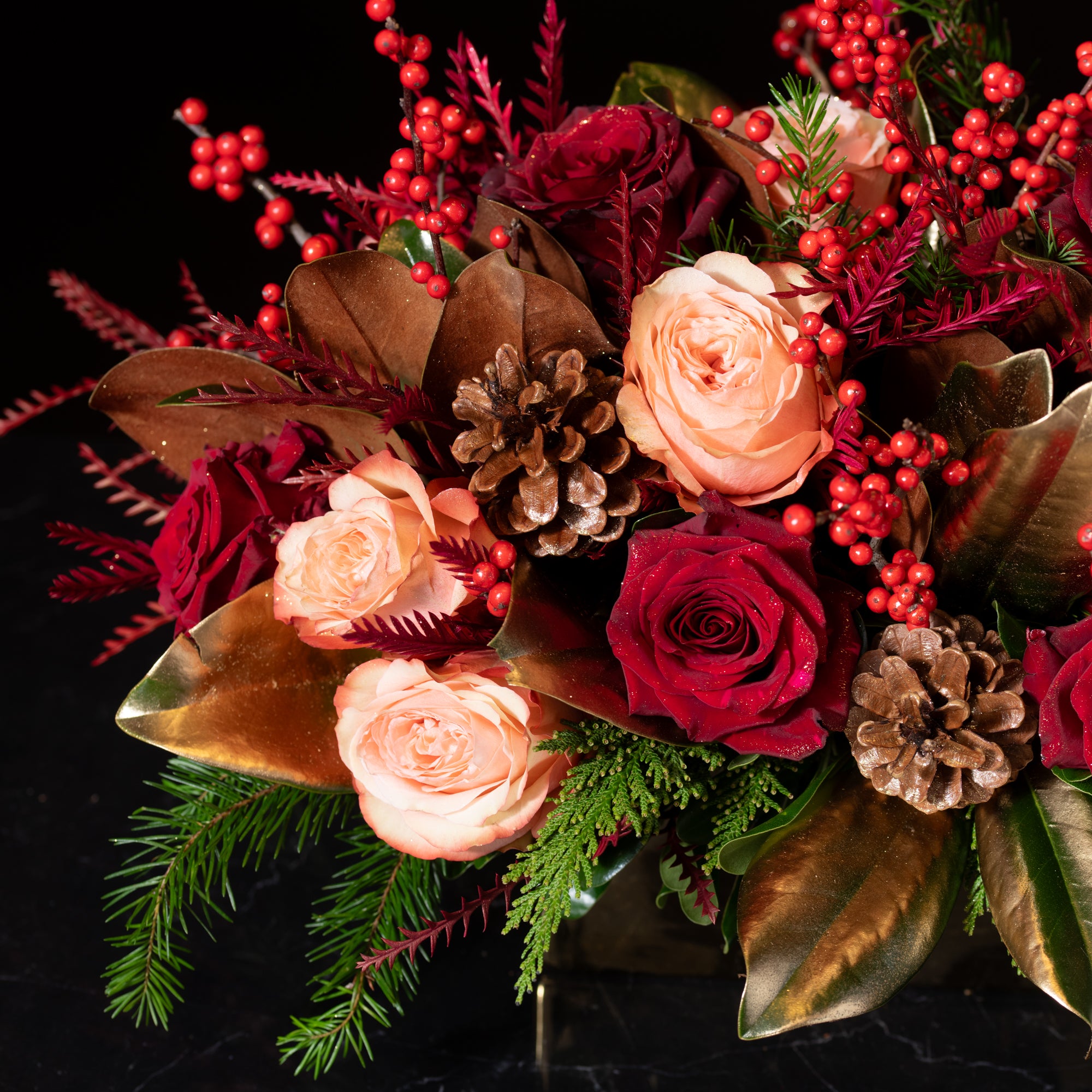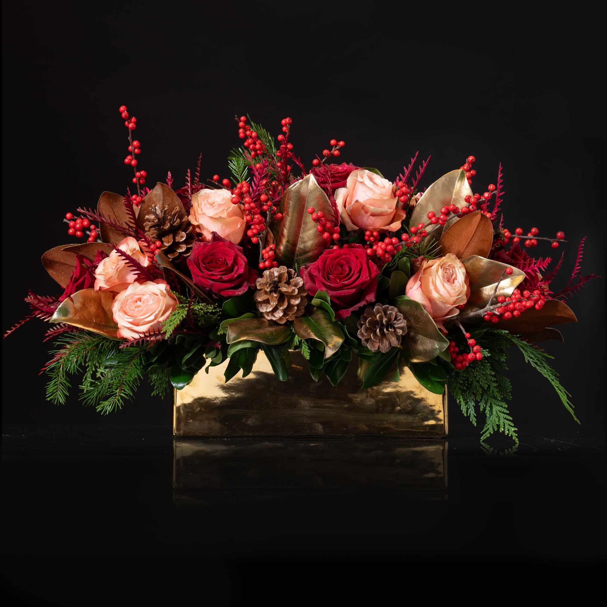 Just in time for the holidays, Golden Magnolia is a traditional European style holiday centerpiece full of fun texture! Make holiday decorating easy this year and select Golden Magnolia for your perfect Christmas tablescape!