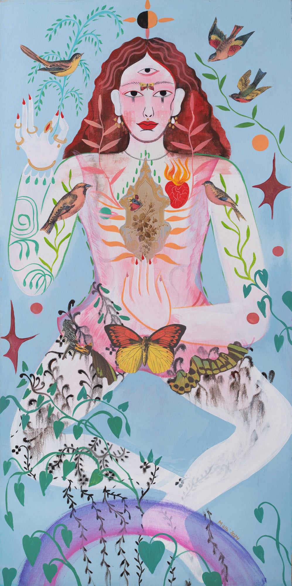 Since then, Matti has raised three children, traveled the world, and lived in various places across the U.S. and Scandinavia, always with a paintbrush in hand. Her artwork now lives in the homes of countries near and far and continues to ebb and flow with the dynamic nature of inspiration, techniques, and symbolism. Matti’s artwork is a reflection of her boundless curiosity, unfettered self-expression, and passion for all things beautiful.
