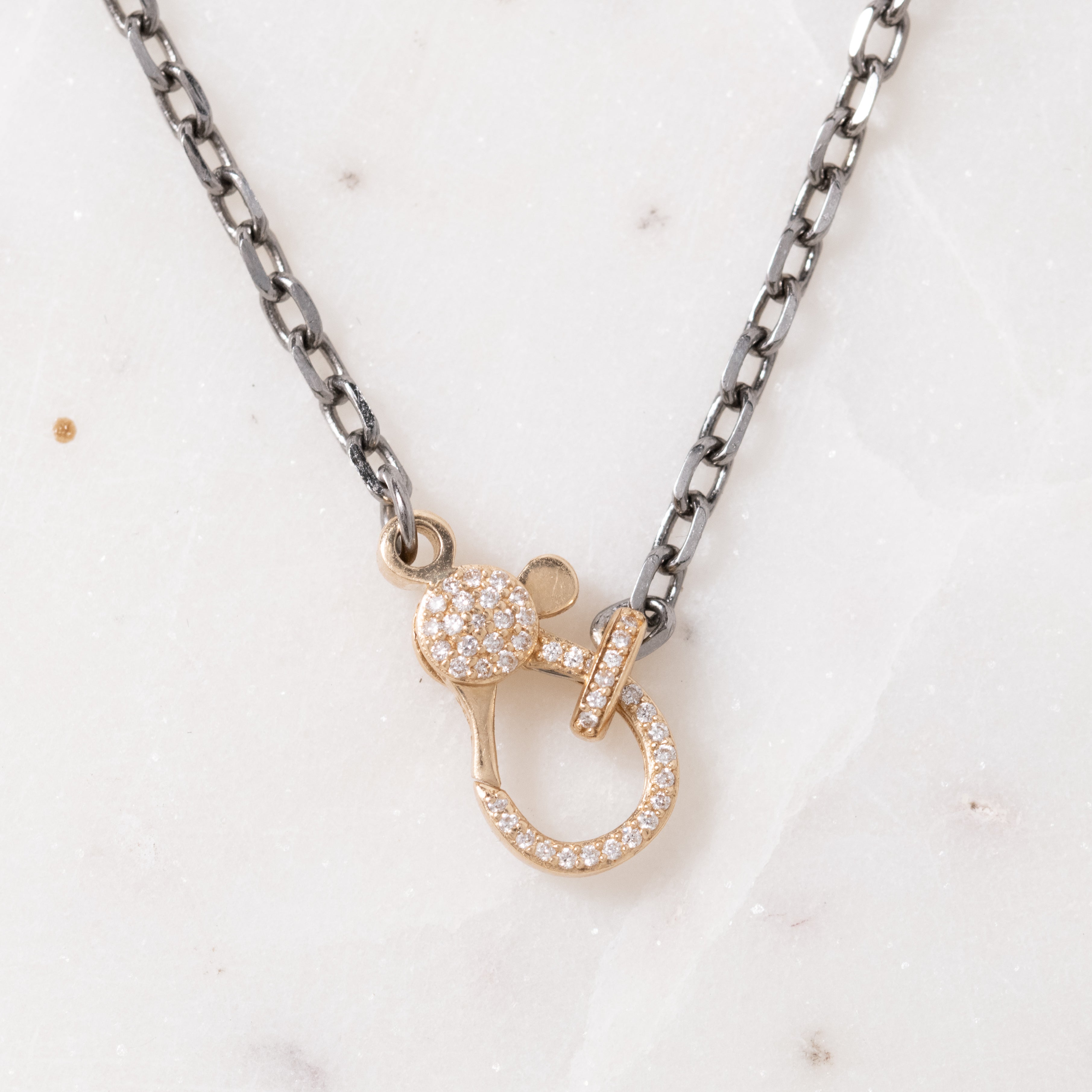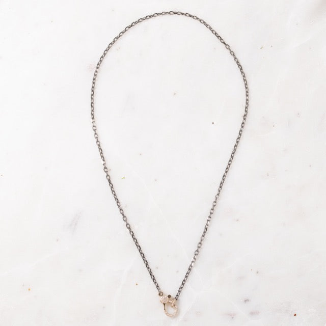 21" Oxidized Silver Trace Link Chain with 14k Gold Diamond Clasp and Connectors