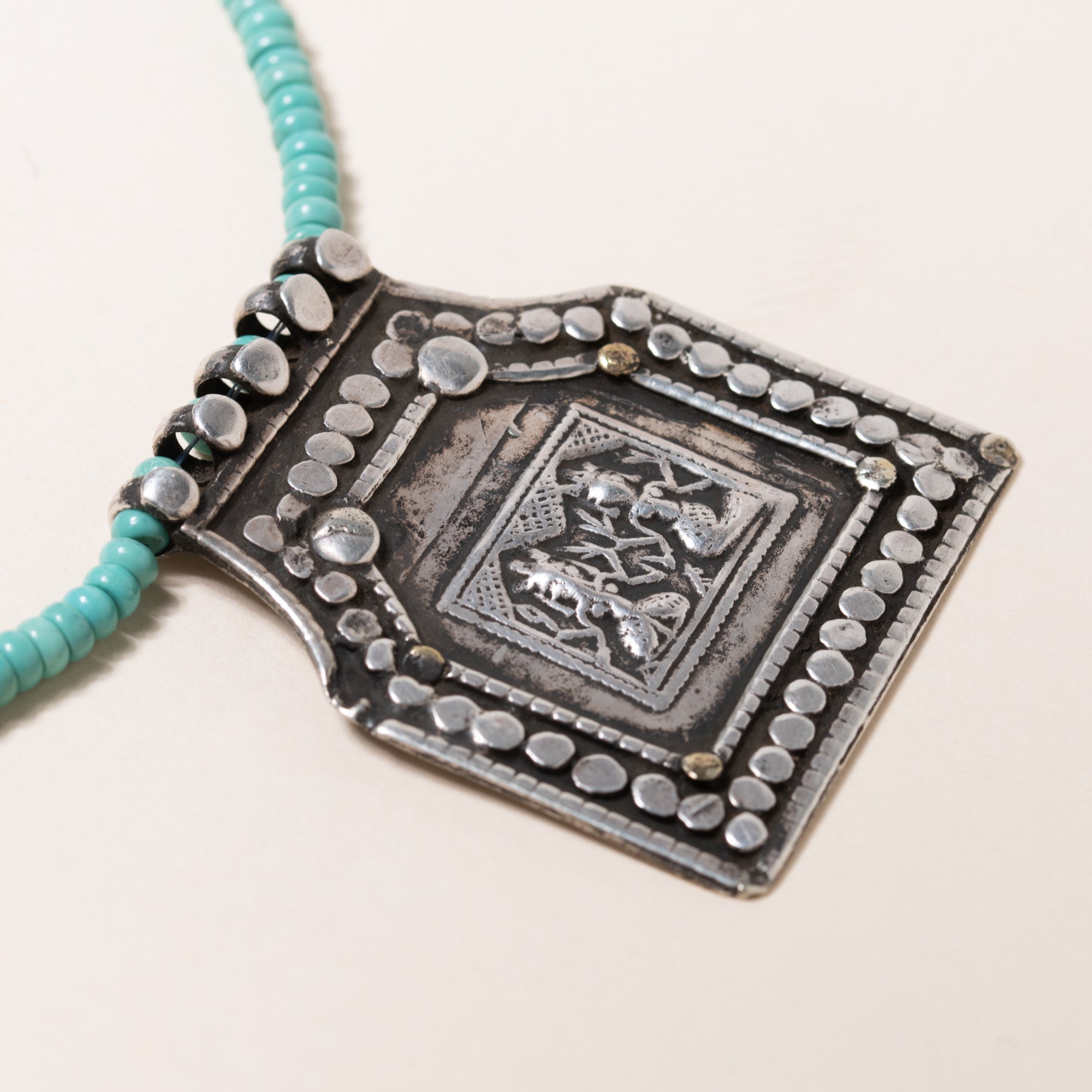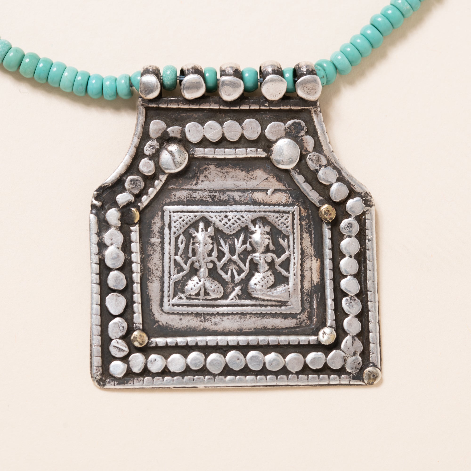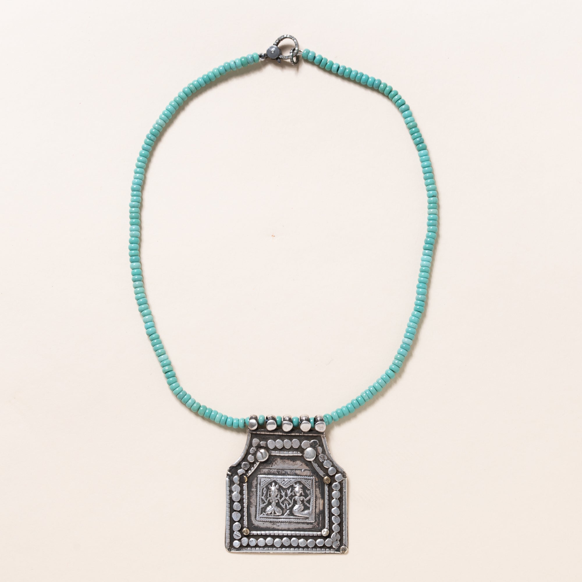 Kingman Turquoise Necklace with Silver Deity Pendant