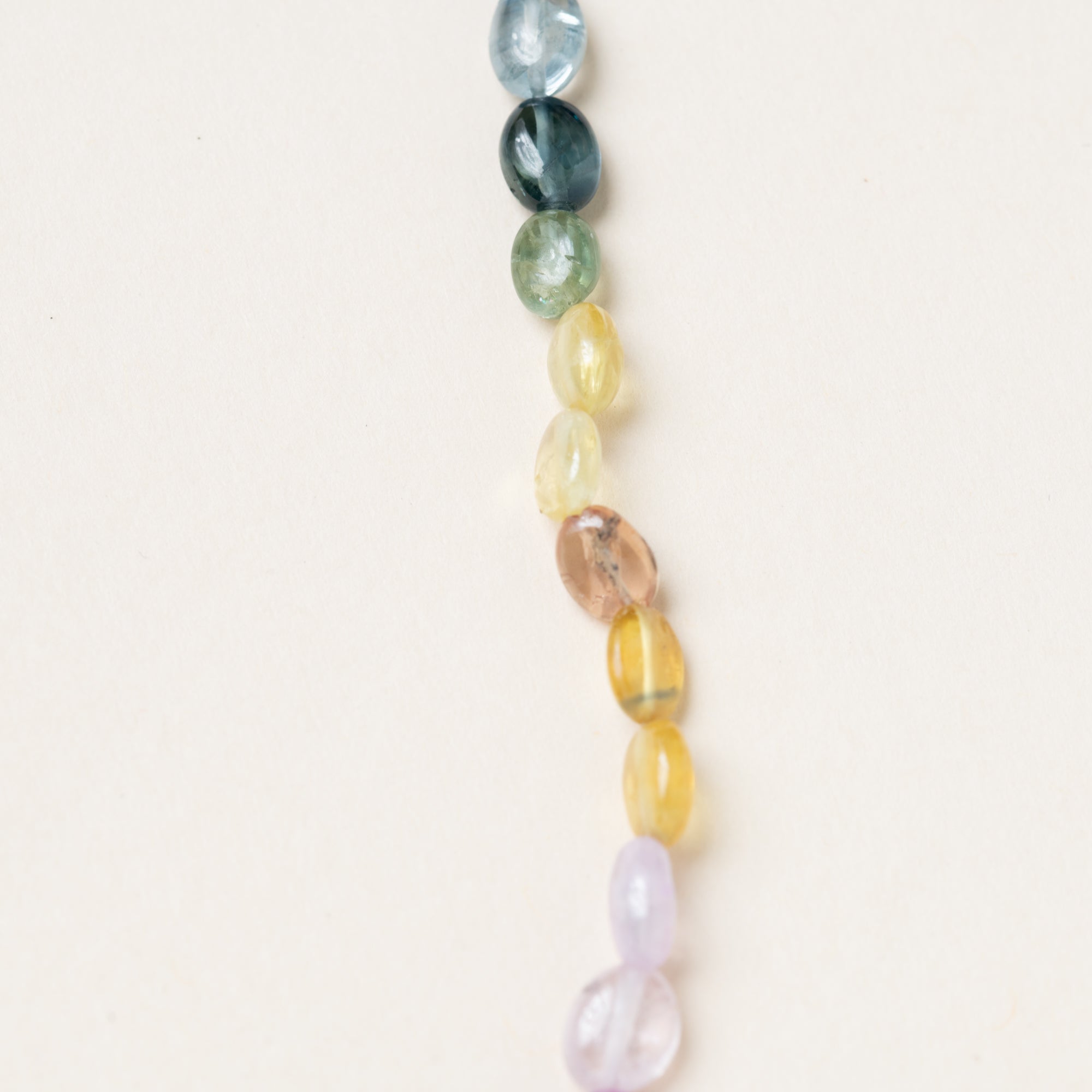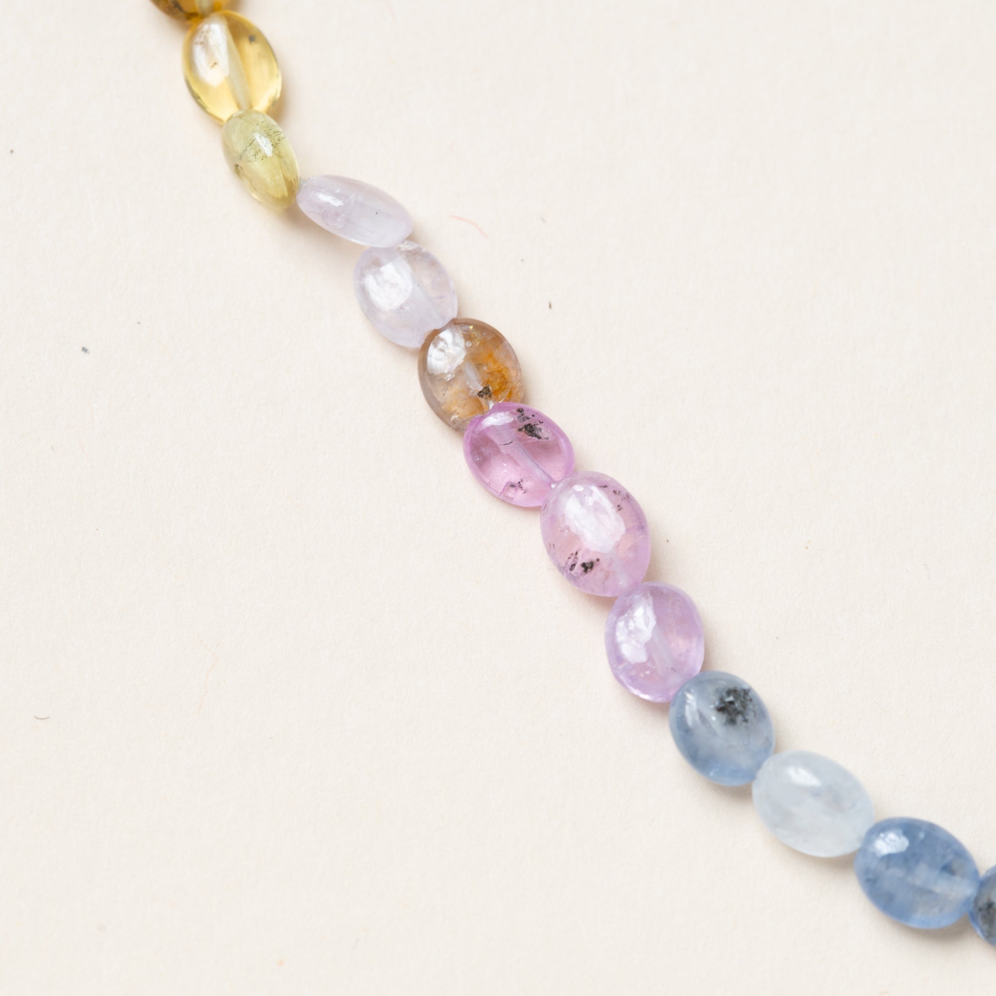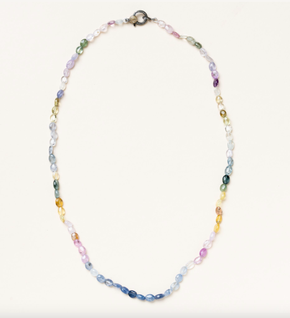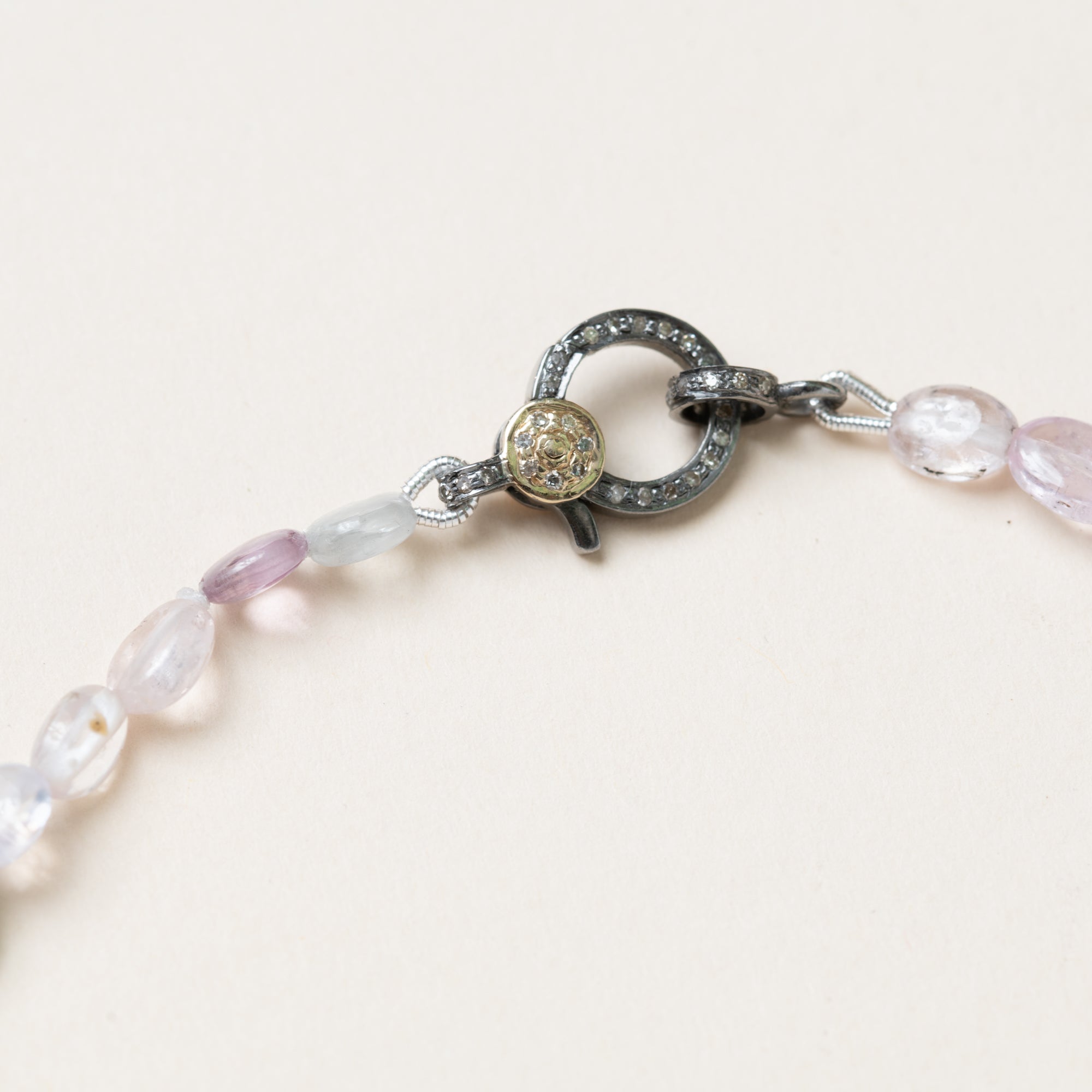 Multi Colored Soft Sapphire Necklace with Silver & 14K Gold Pave Diamond Clasp