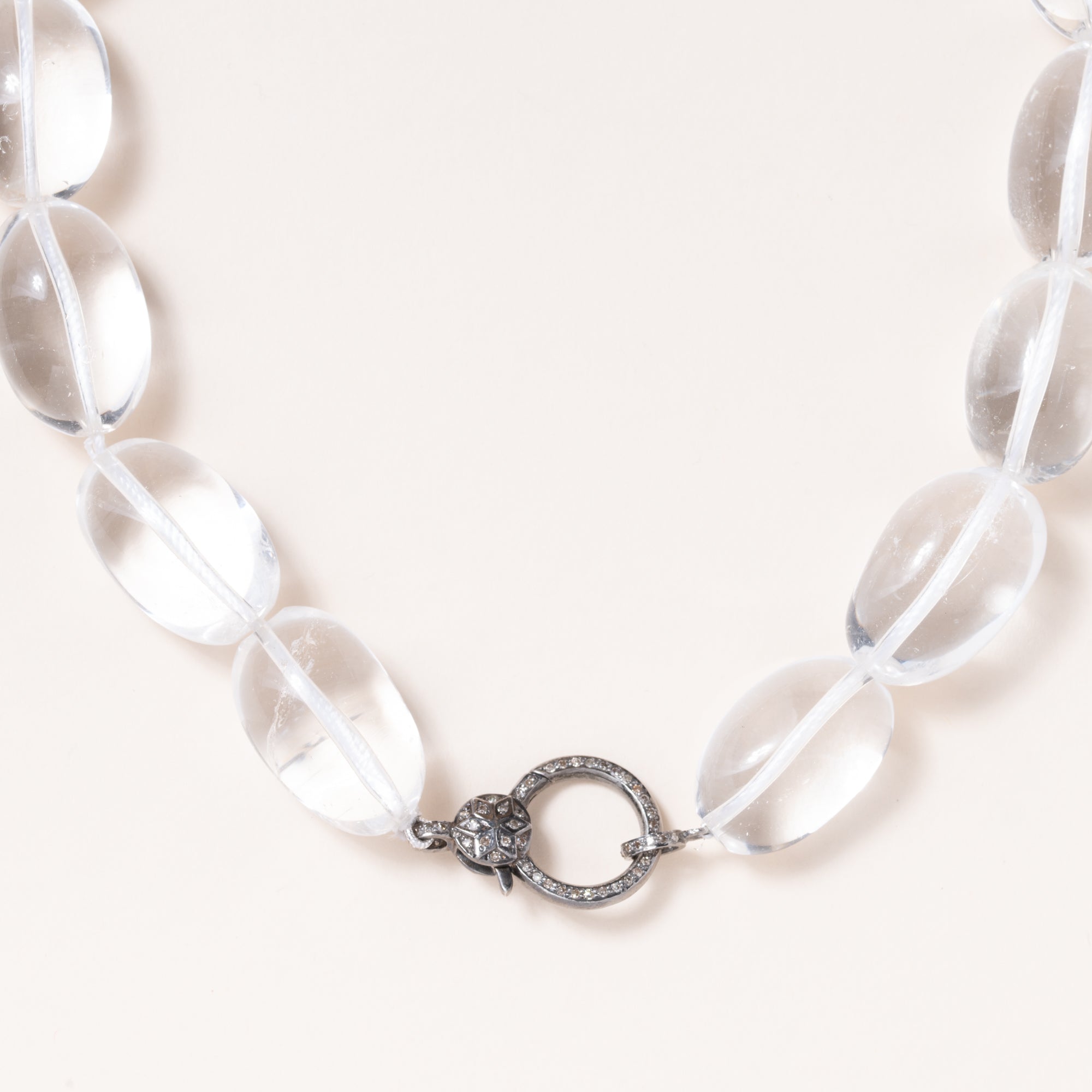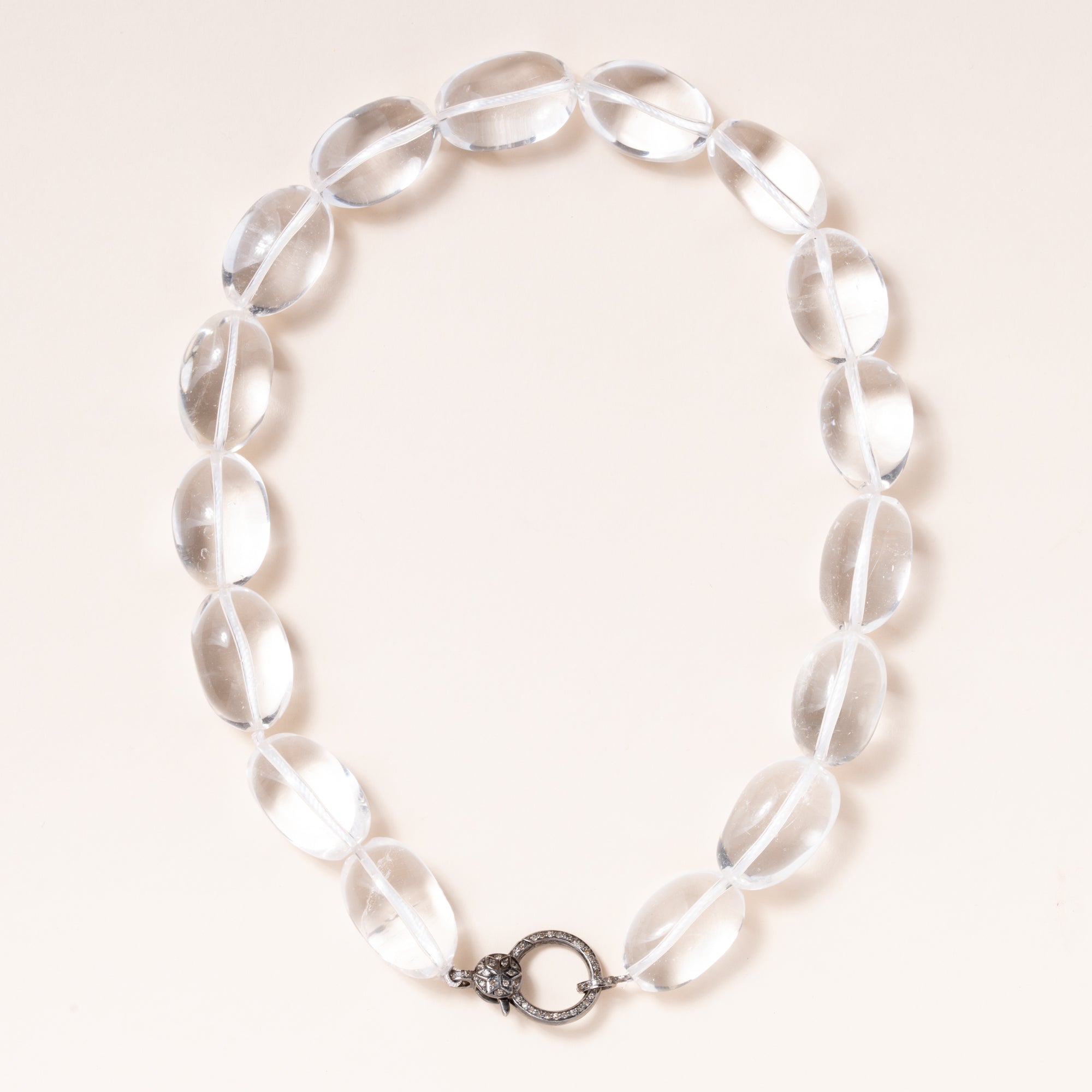 Oval Crystal Bead Chain with Double Sided Silver & Diamond Pave Clasp