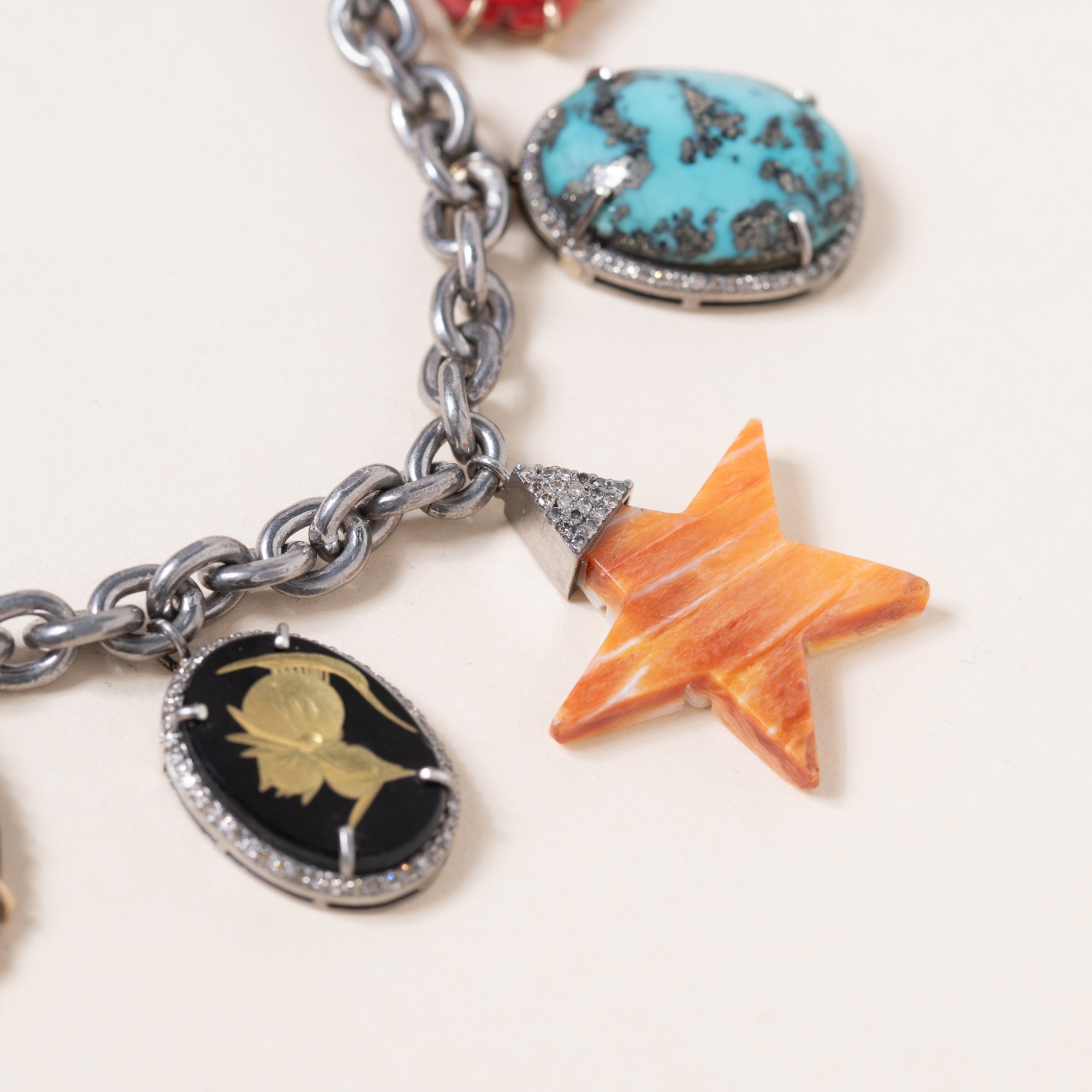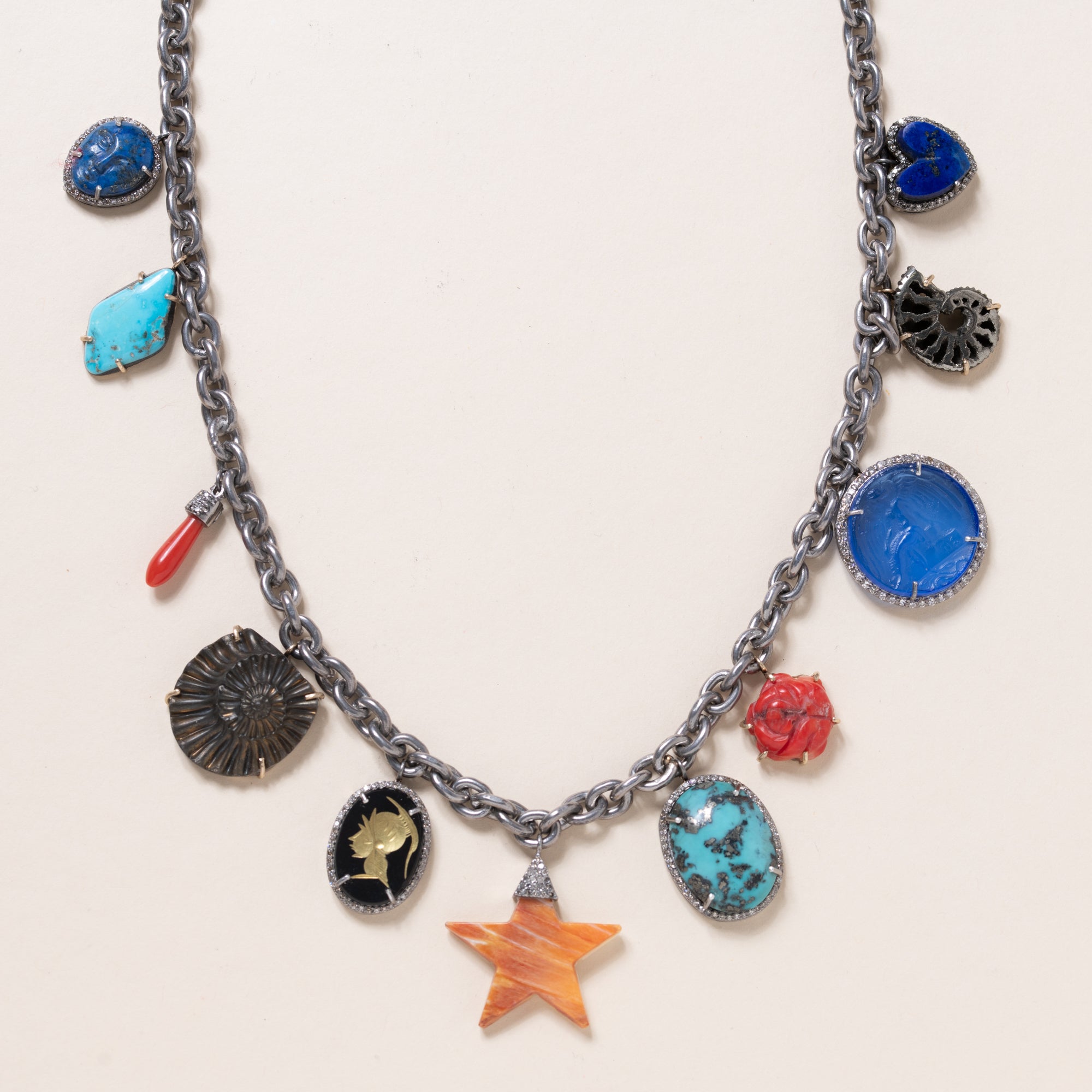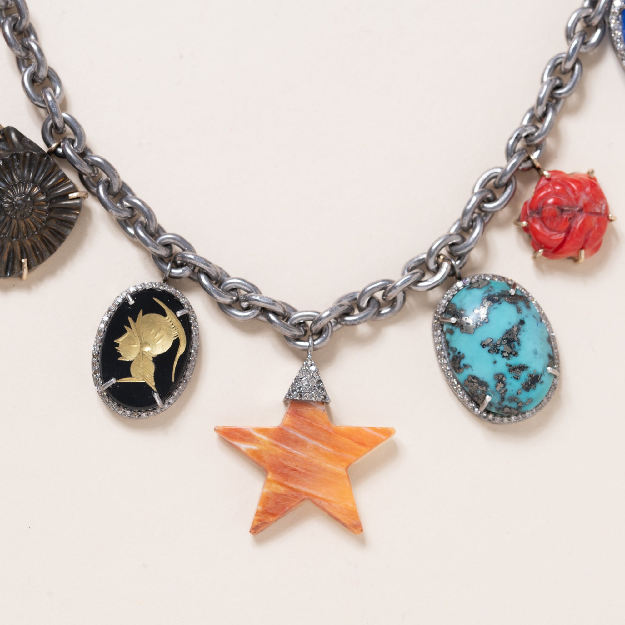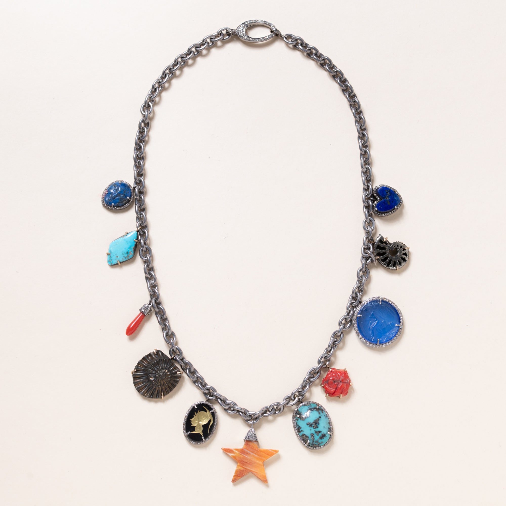 Summer has arrived, and what better way to celebrate than with this gorgeous one of a kind charm necklace designed by Anuschka herself. Inspired by a beach vacation, Anuschka hand picked all of these charms to tell a story of adventure, and relaxation! Snatch this work of art while you can.