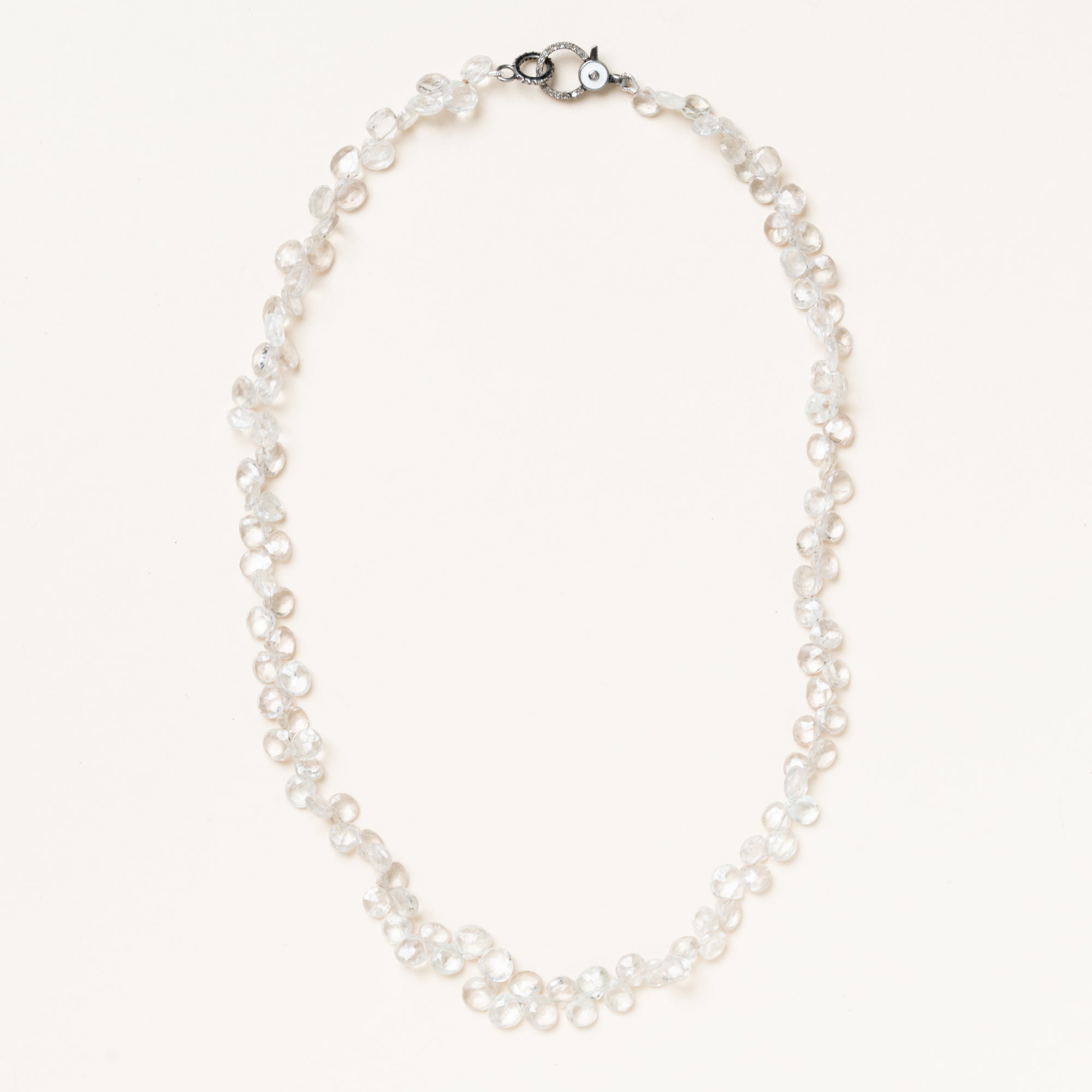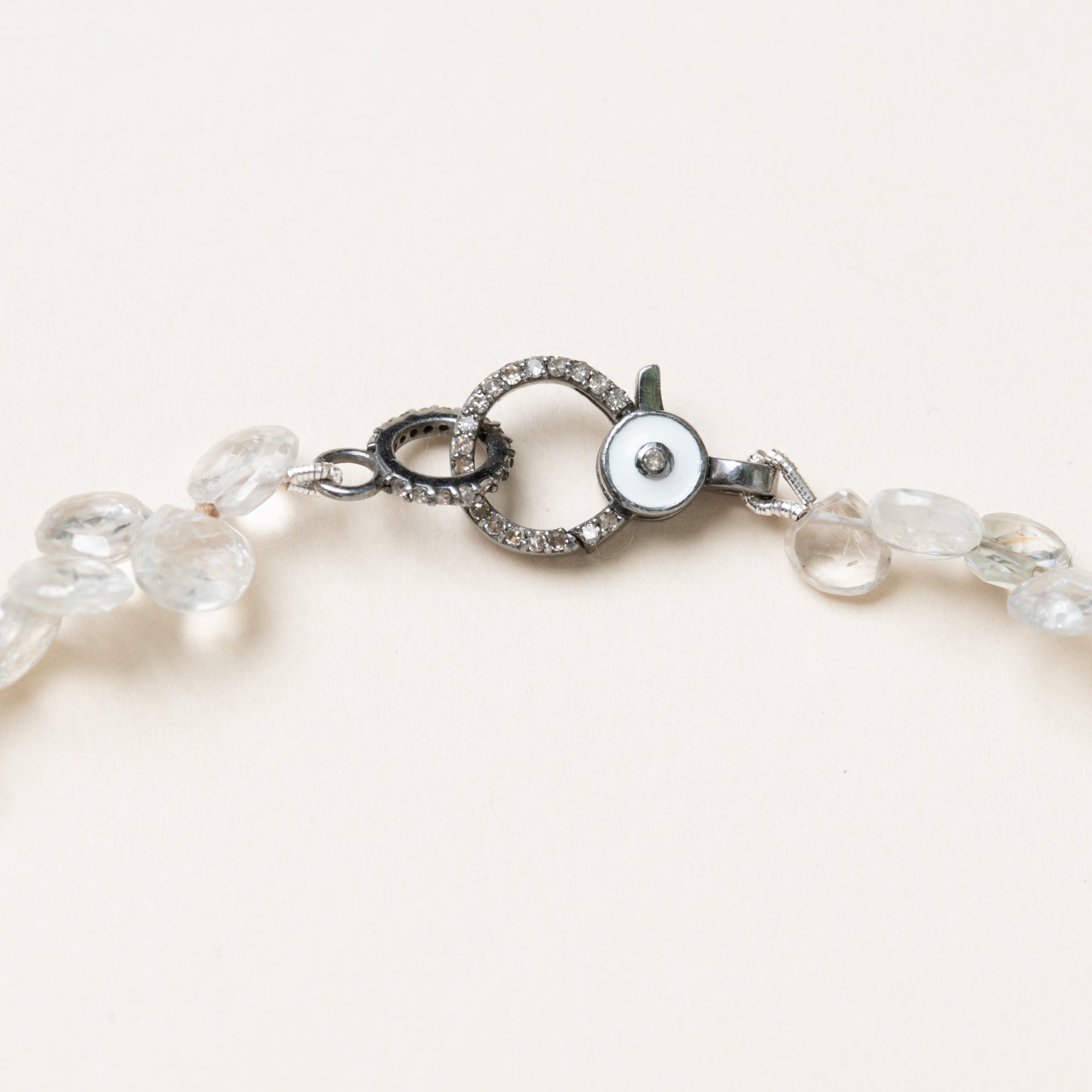 Small Crystal Drop Necklace with Silver & Enamel & Diamond Clasp