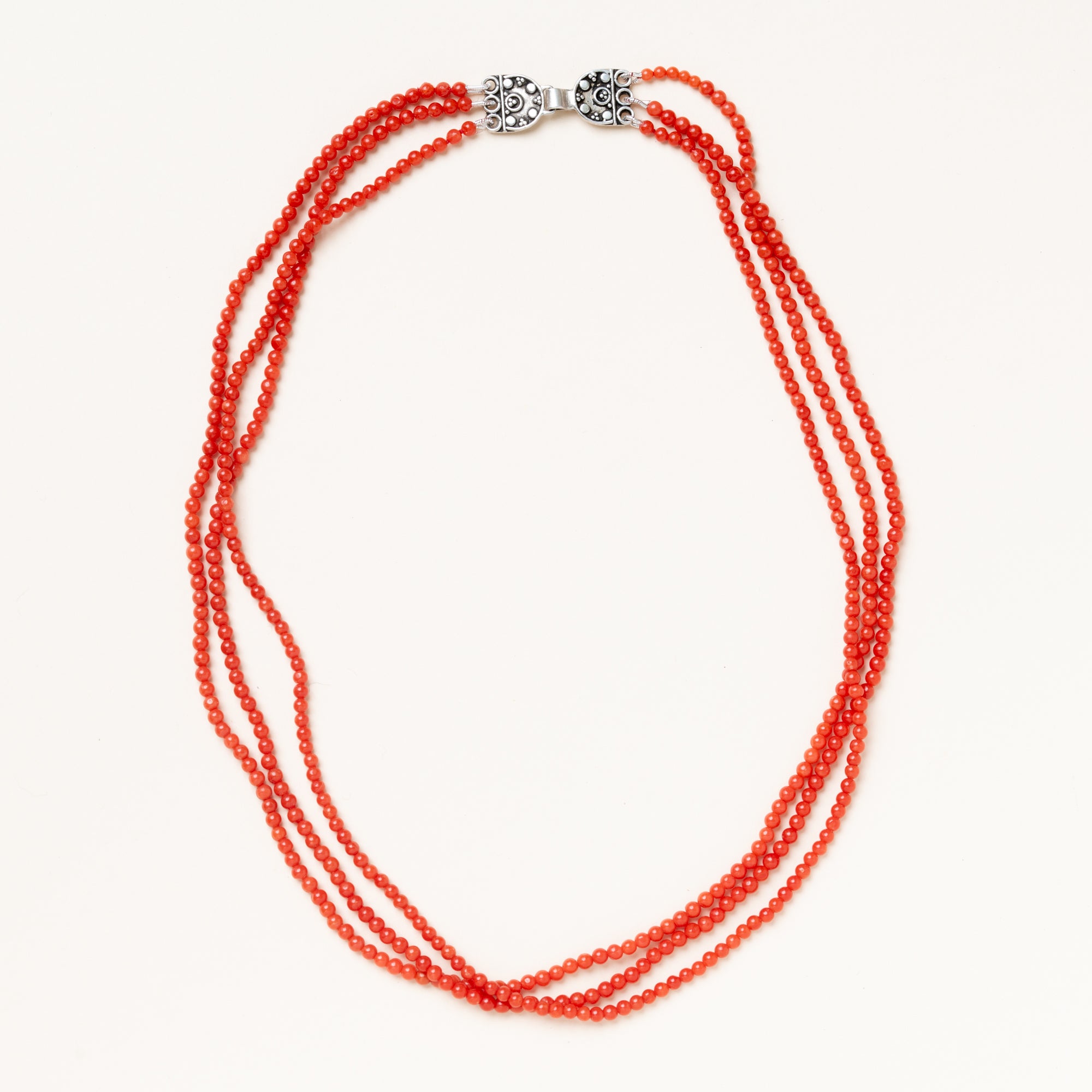 Tiny Coral Ball Necklace w/ Silver Indian Clasp