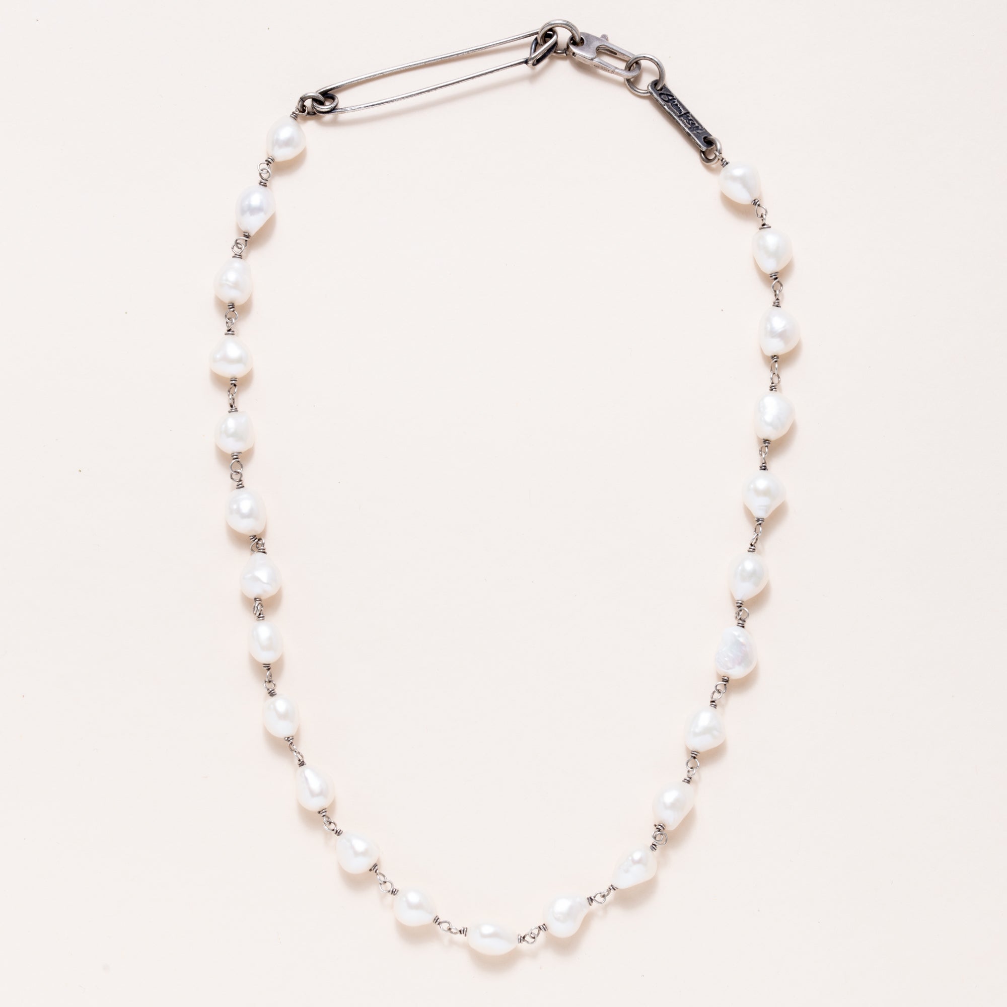 Safety Pin Pearl Necklace