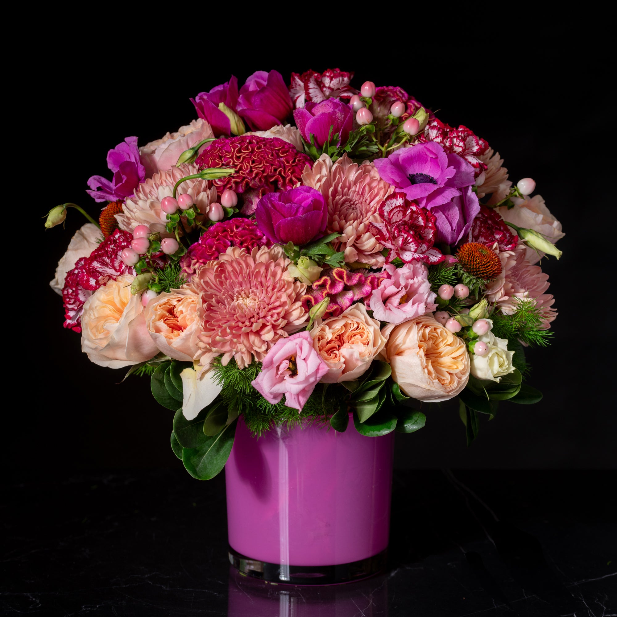 Monochromatic arrangements are always a favorite. Berry Fuchsia is the perfect touch of feminine and romantic!