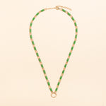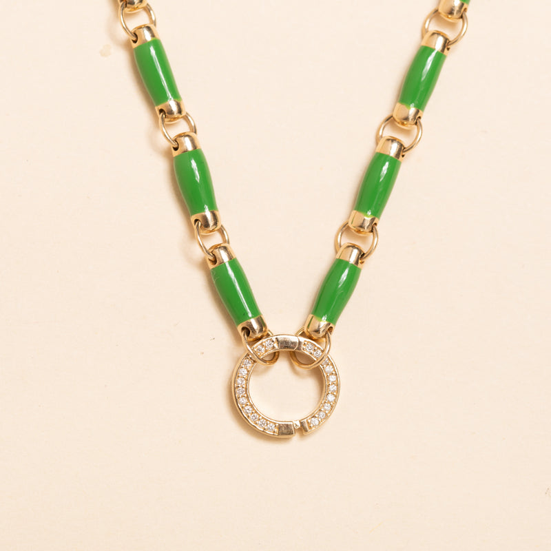 17'' Petite Gold and Green Enamel Link Necklace with Diamond Connector