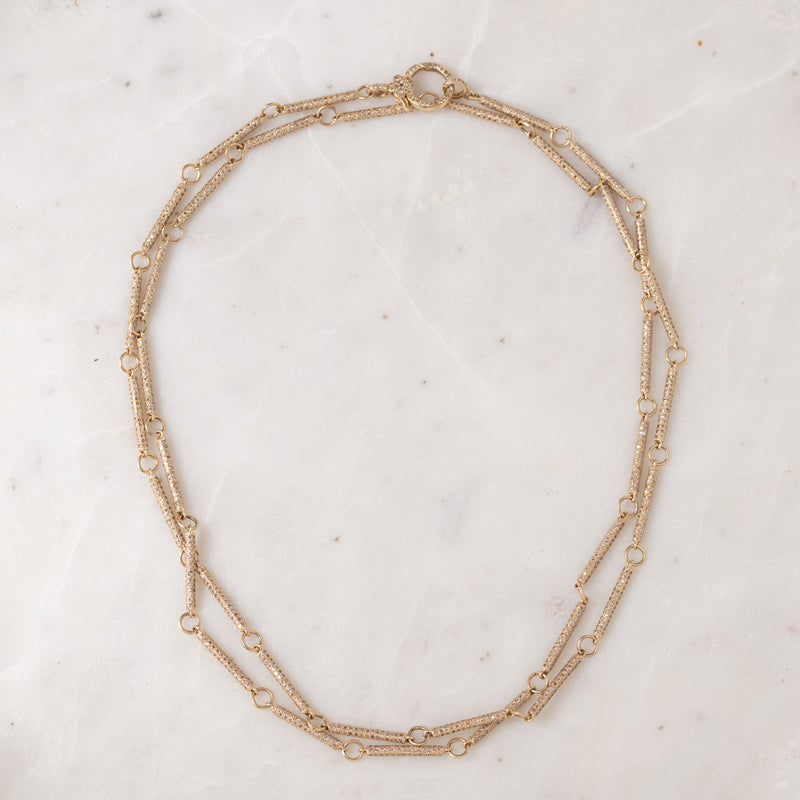 36" Gold and Diamond Bar Link Necklace with Diamond Clasp