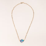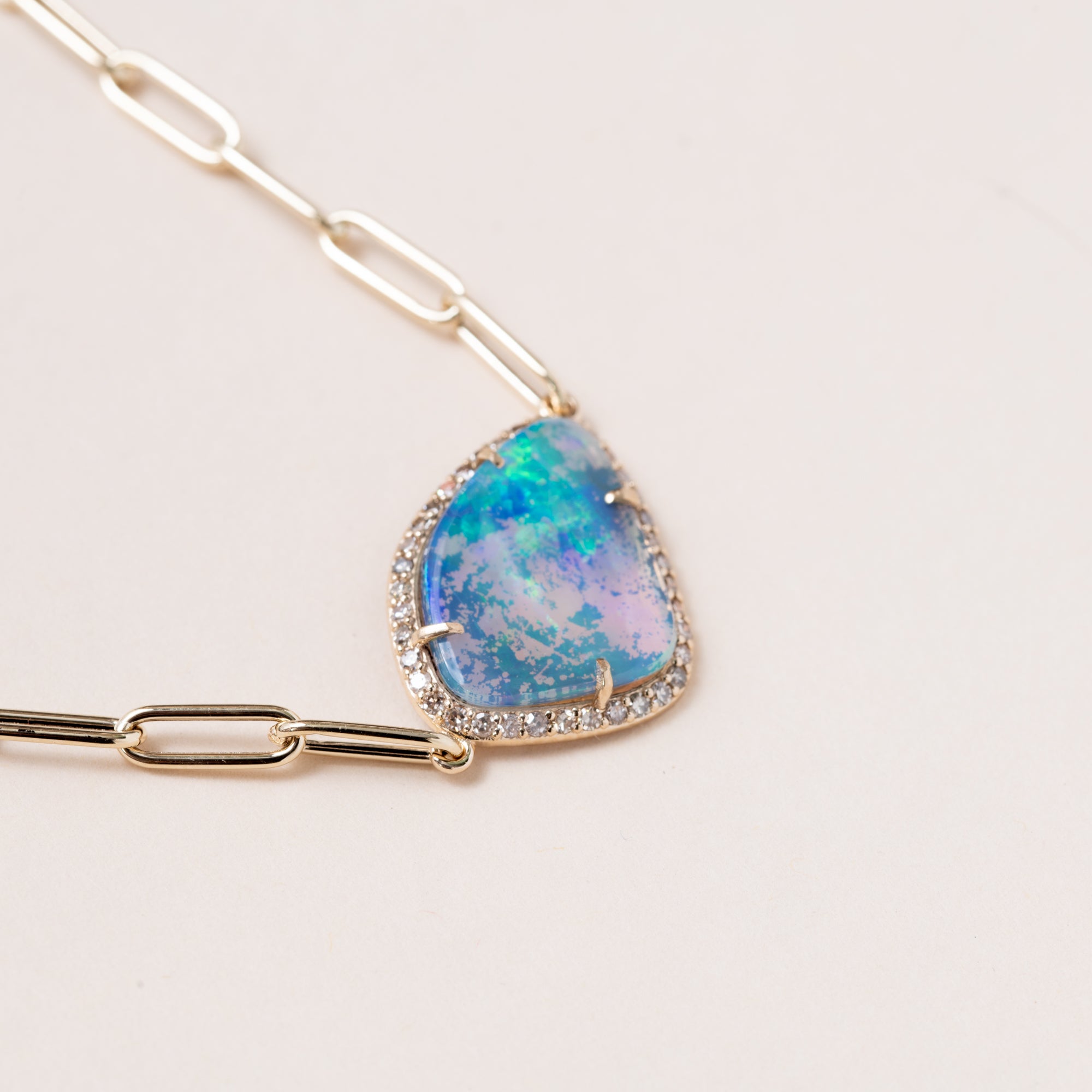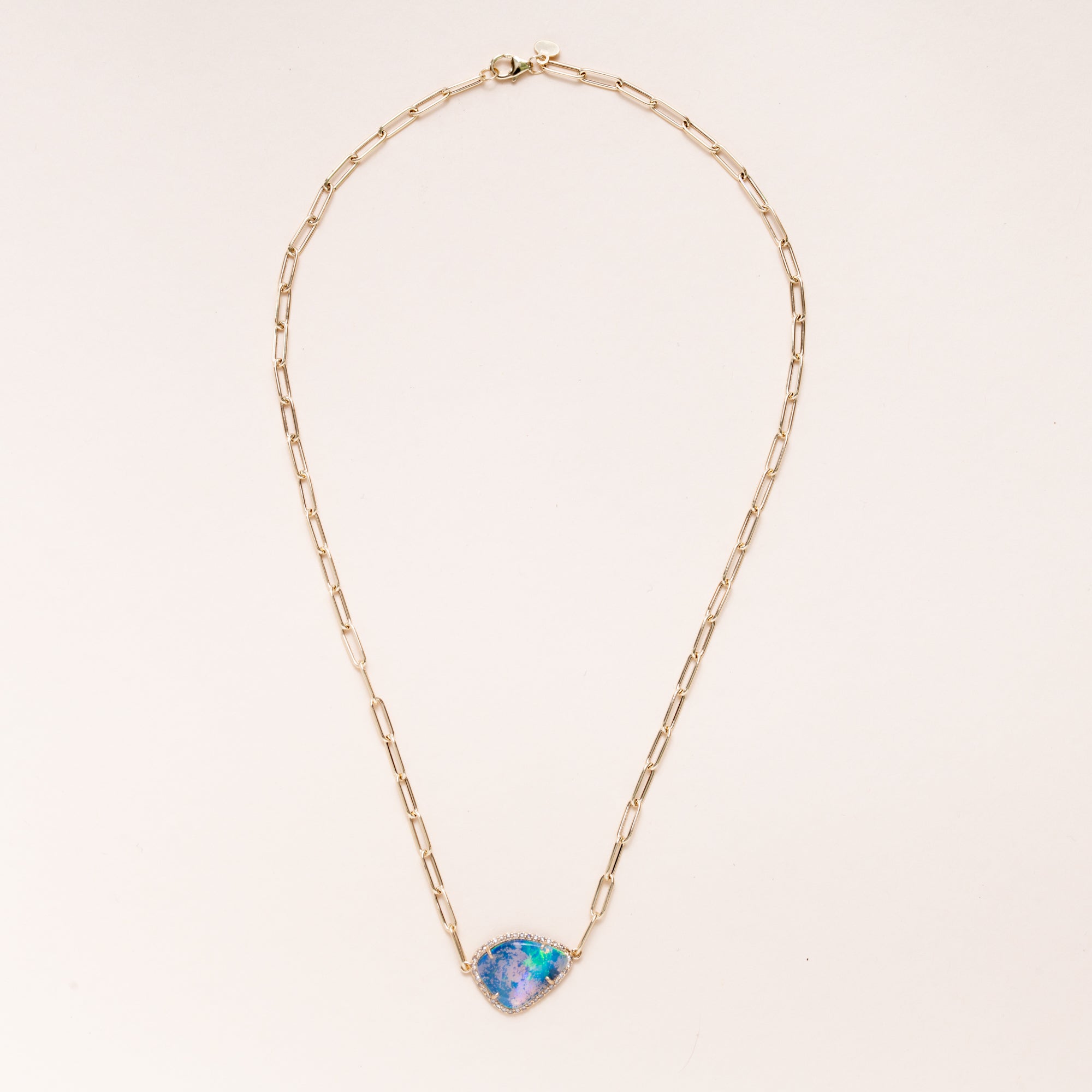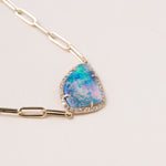 Australian Opal, Pave Diamonds and 14 K Gold Paper Clip Necklace