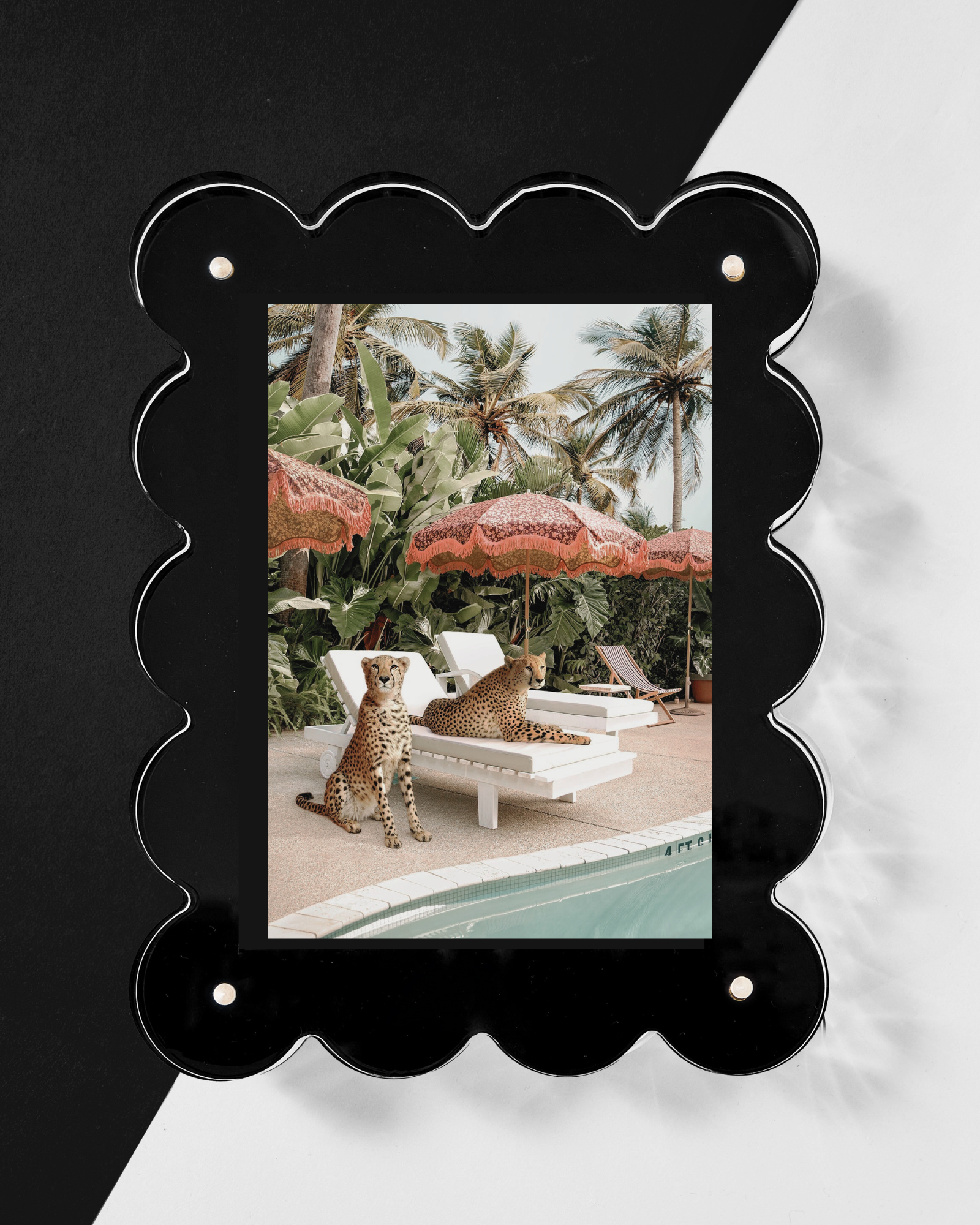 Display your favorite photos in style with this black acrylic picture frame! It features a magnetic border to securely hold your cherished pictures as well as adding a stylish touch. Perfect for giving your home a fun and unique look! 🤩