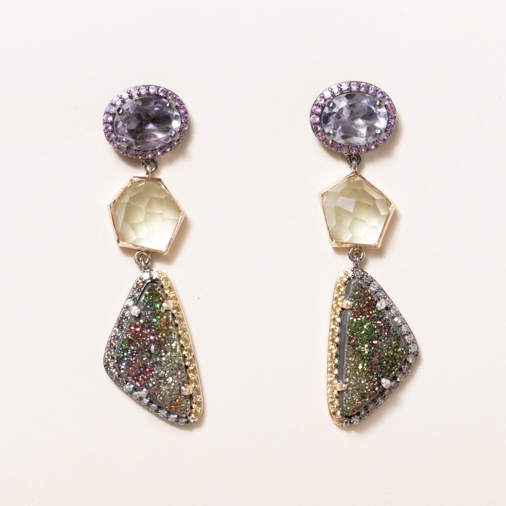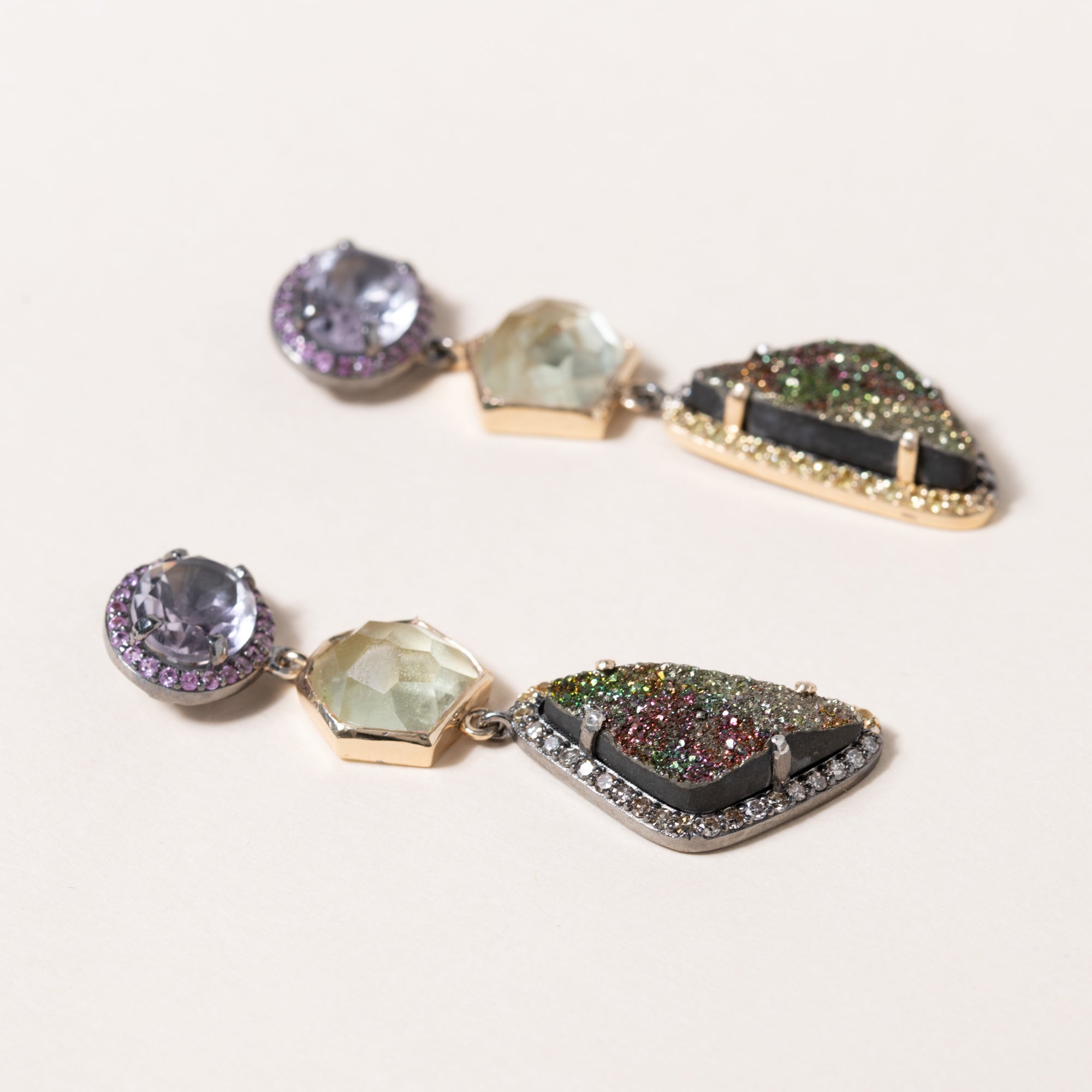 Pink Amethyst and Rainbow Druzy Drop Earrings