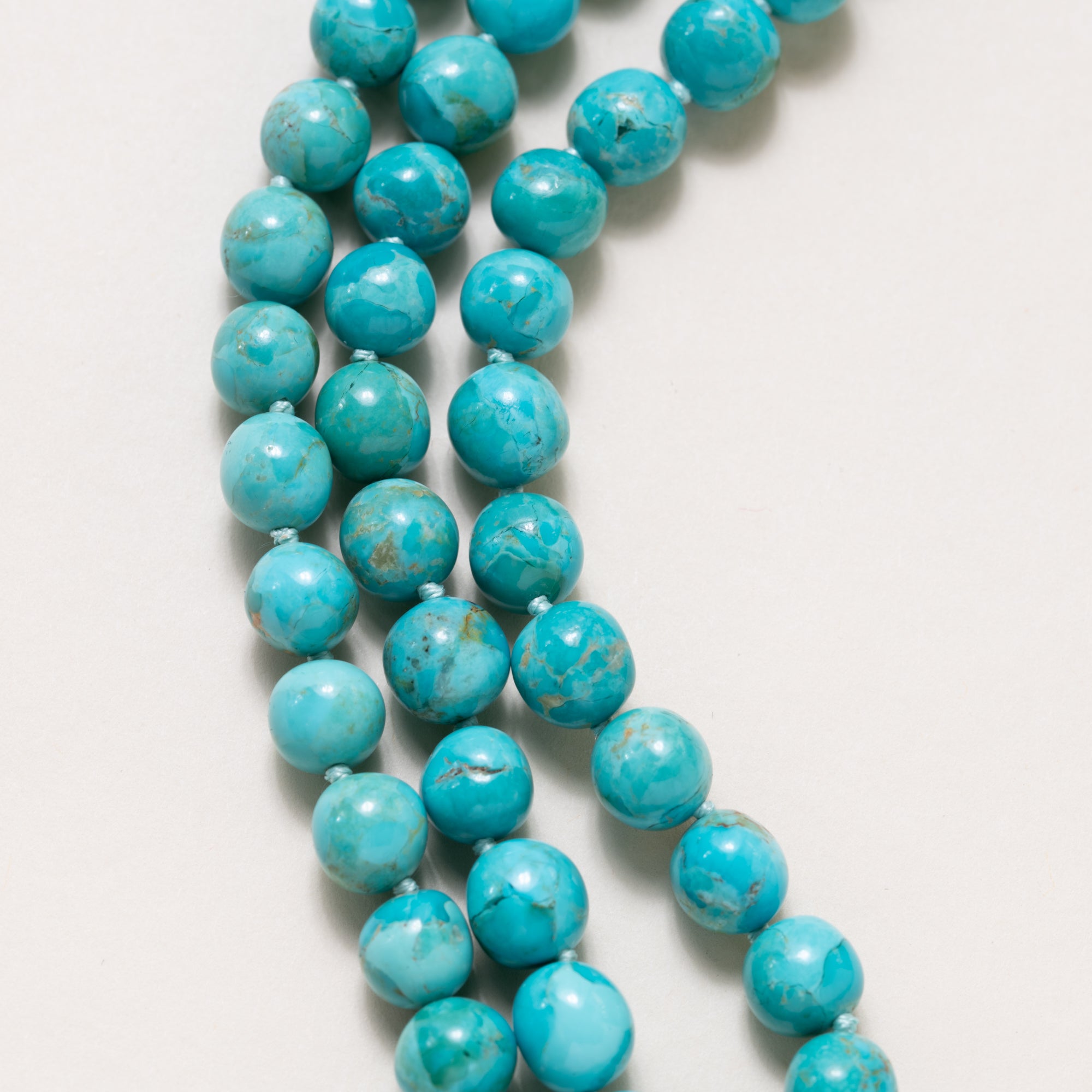 Kingman Turquoise 3-Strand hand knotted necklace with Indian Silver Clasp