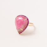Pear Shape Watermelon Tourmaline Ring with Pave Pink Sapphire and 14k Gold