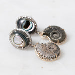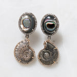 Pyritized Ammonite and Abalone Earrings