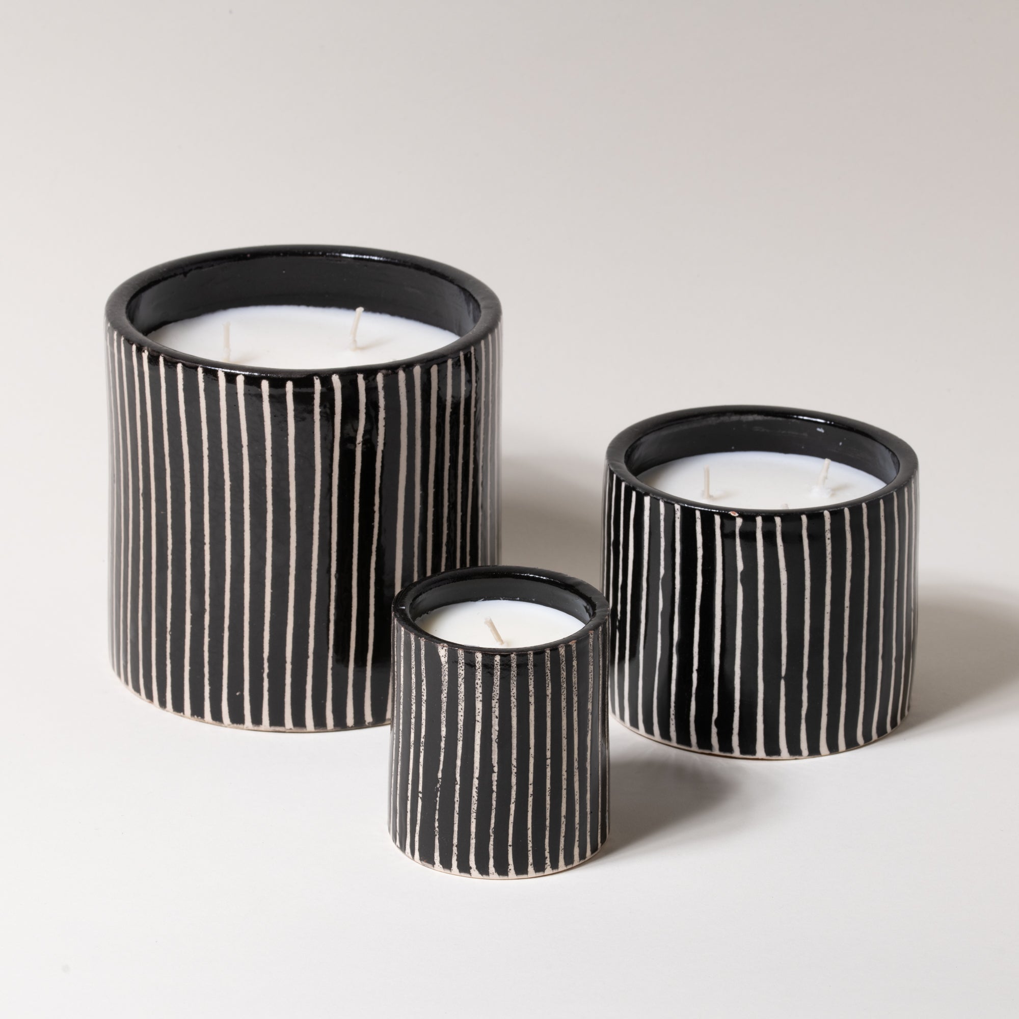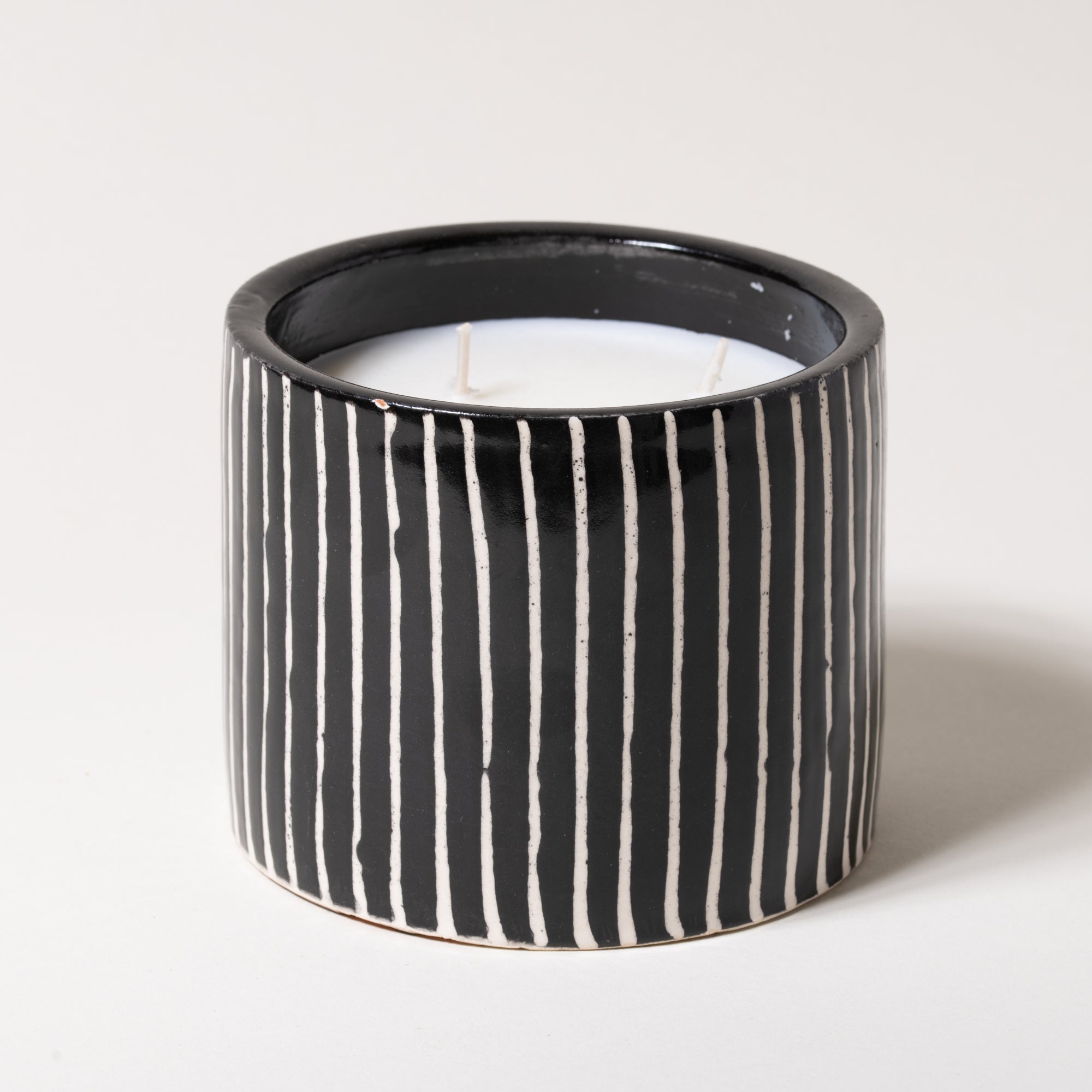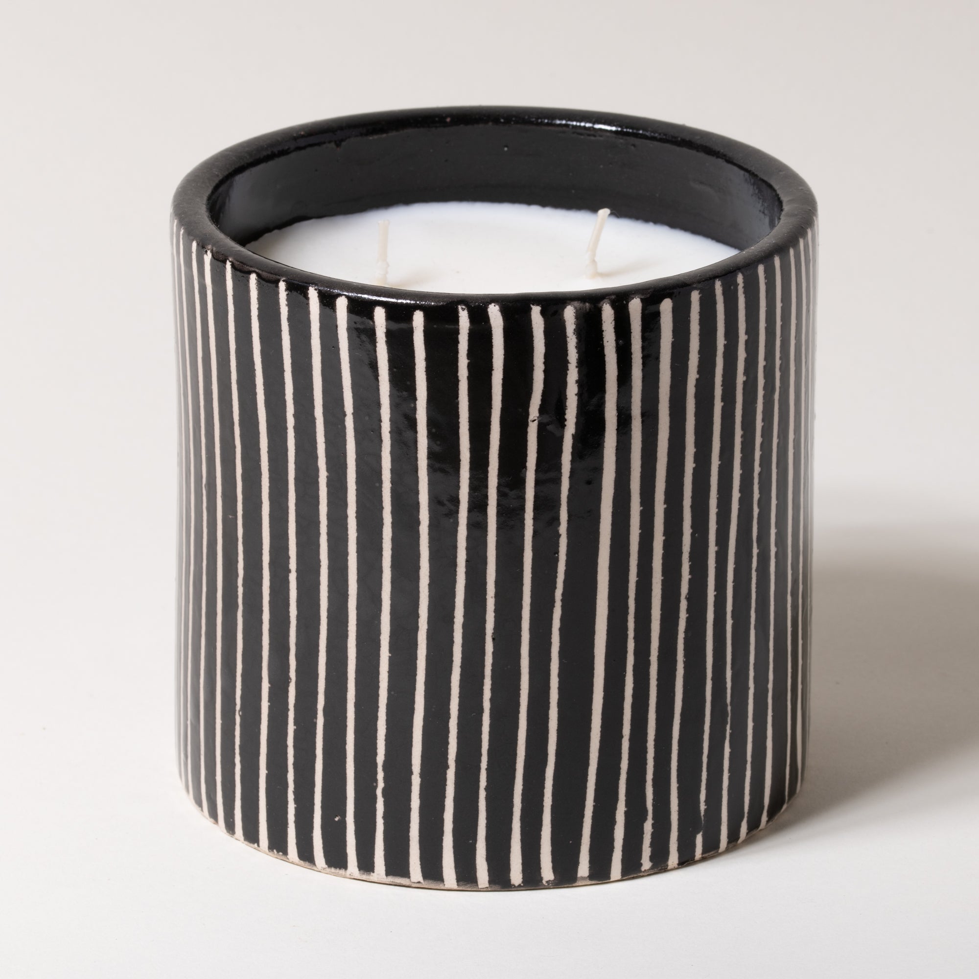 Our new scent in a unique and new design- sweet mandarin in a hand painted stripped ceramic container.